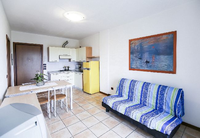 1 bedroom villa on 2 floors. Ground floor: garden, Kitchenette and double sofabed. On the first floor: 1 bathroom, bedroom with double and single bed. "La Quercia" arcade is a real meeting point the entire holiday village area of Caorle Lido Altanea: a wide square, shops, bars, restaurant and many other commercial activities overlooking the covered pedestrian gallery. A spectacular elevated and lighted swimming pool, offers a special setting to this village made of 22 shops and 84 apartments. Fee-paying beach service available (information in Lampo office in Caorle Lido Altanea).