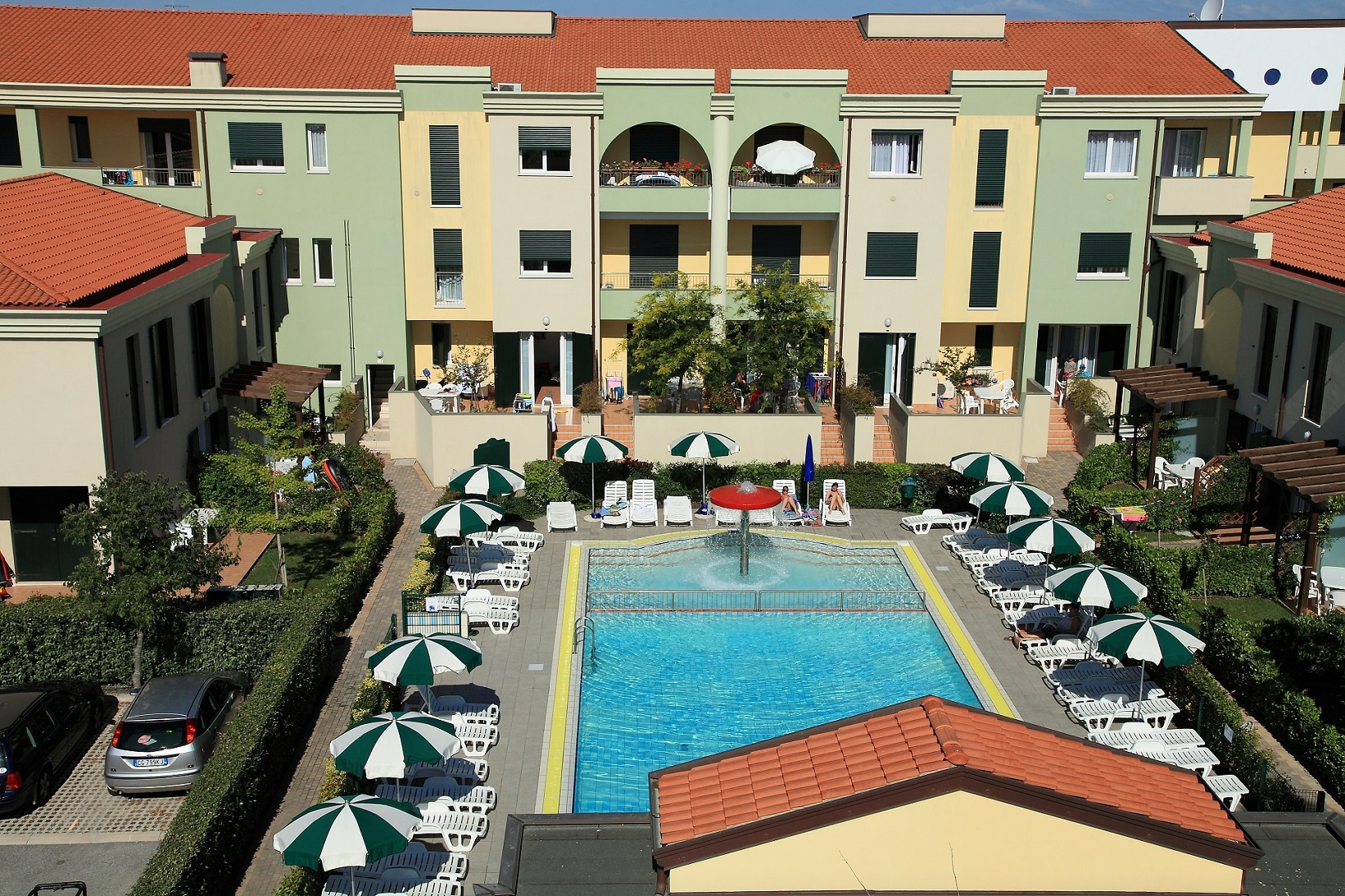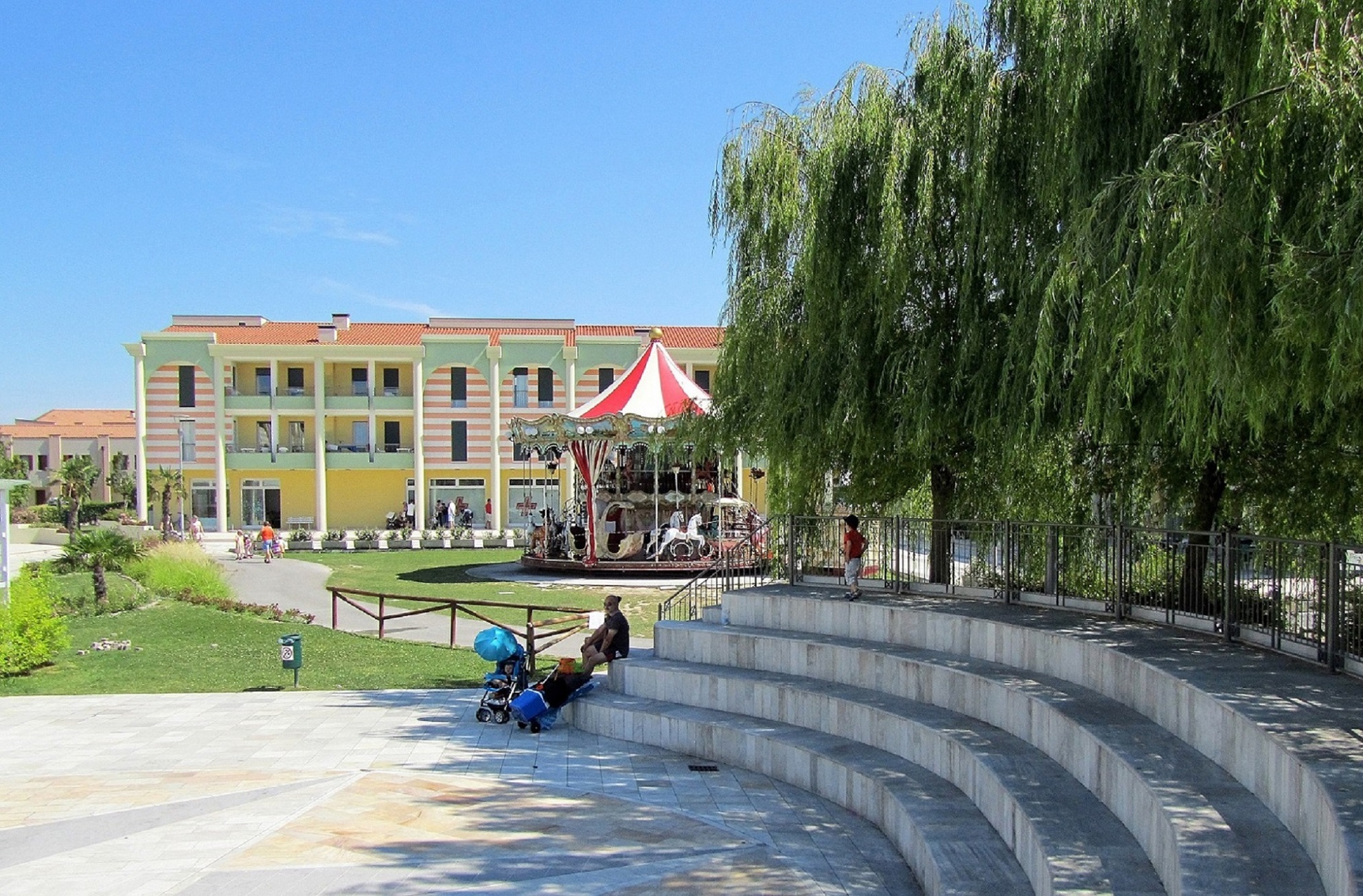 One-room flat with balcony on the upper floor of the apartment building, composed of living room with a double bed, an armchair bed and a fold-away bed, kitchenette, bathroom. VILLAGGIO LUNA 2 is an holiday village situated on the West Beach of Caorle, 250 meter from the sea, composed of little terraced houses, all organized in two floors, equipped with air conditioning, safe and numbered parking spaces, some with a private garden, others with a terrace. Swimming pool for adults and children sorrounded by the solarium. In the village there is also a building with lift (door width: 75 cm) with apartments of different sizes, all with balcony.