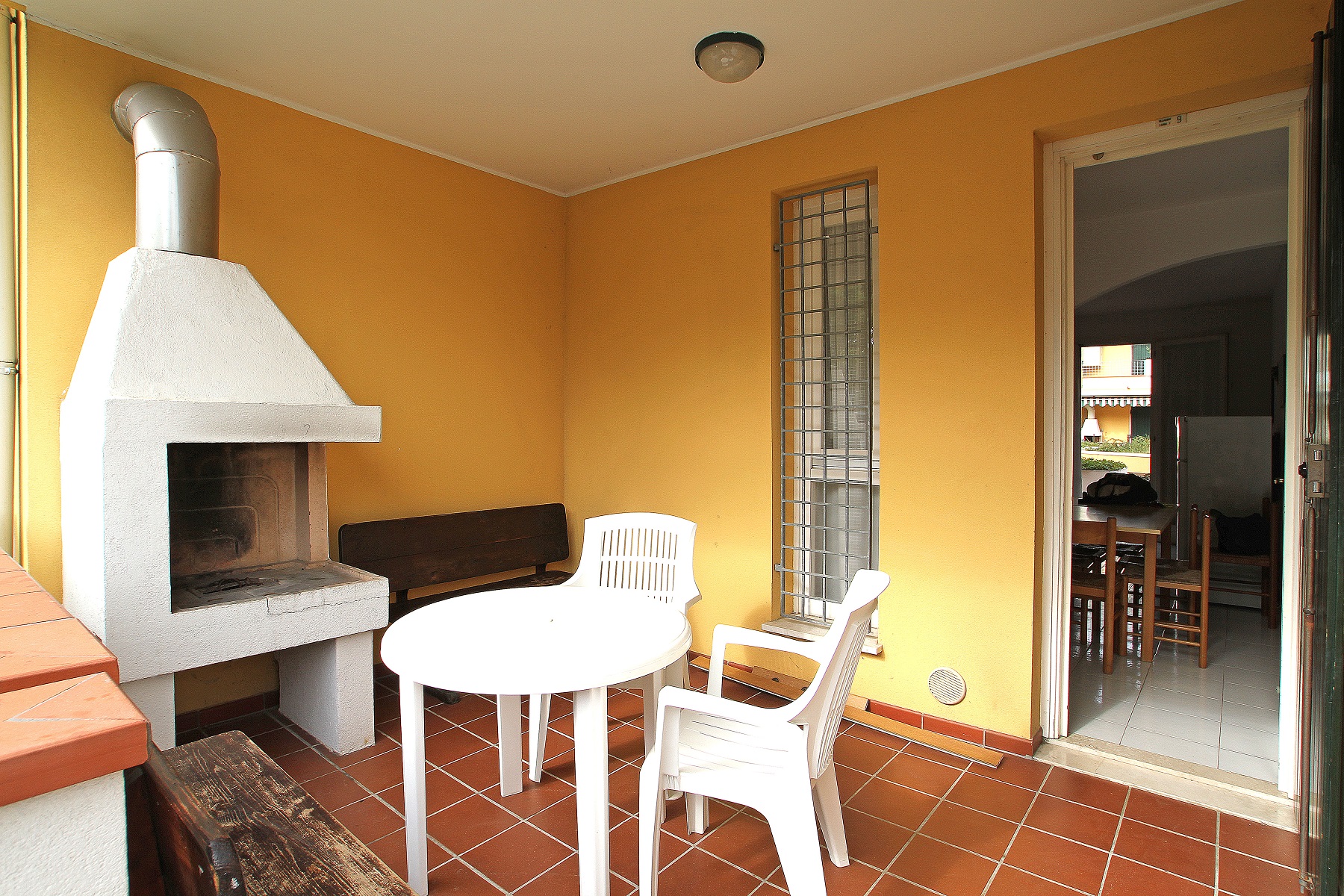 Two-floor terraced house with balcony and garden with outside fireplace. On the ground floor living room with double bed sofa and kitchen corner. On the first floor bedroom with double bed, bedroom with two single beds, bathroom. VILLAGGIO LUNA 1 is a holiday village situated on the West Beach of Caorle, 150 meters far from the sea. It's composed of terraced houses with a little garden or a terrace, some with an outside fireplace too, all organized in two floors: on the ground floor there's the living room with the kitchen corner, on the first floor the bedroom/-s and the bathroom. The swimming pool and the sun terrace are in the "Villaggio Luna 2" nearby.