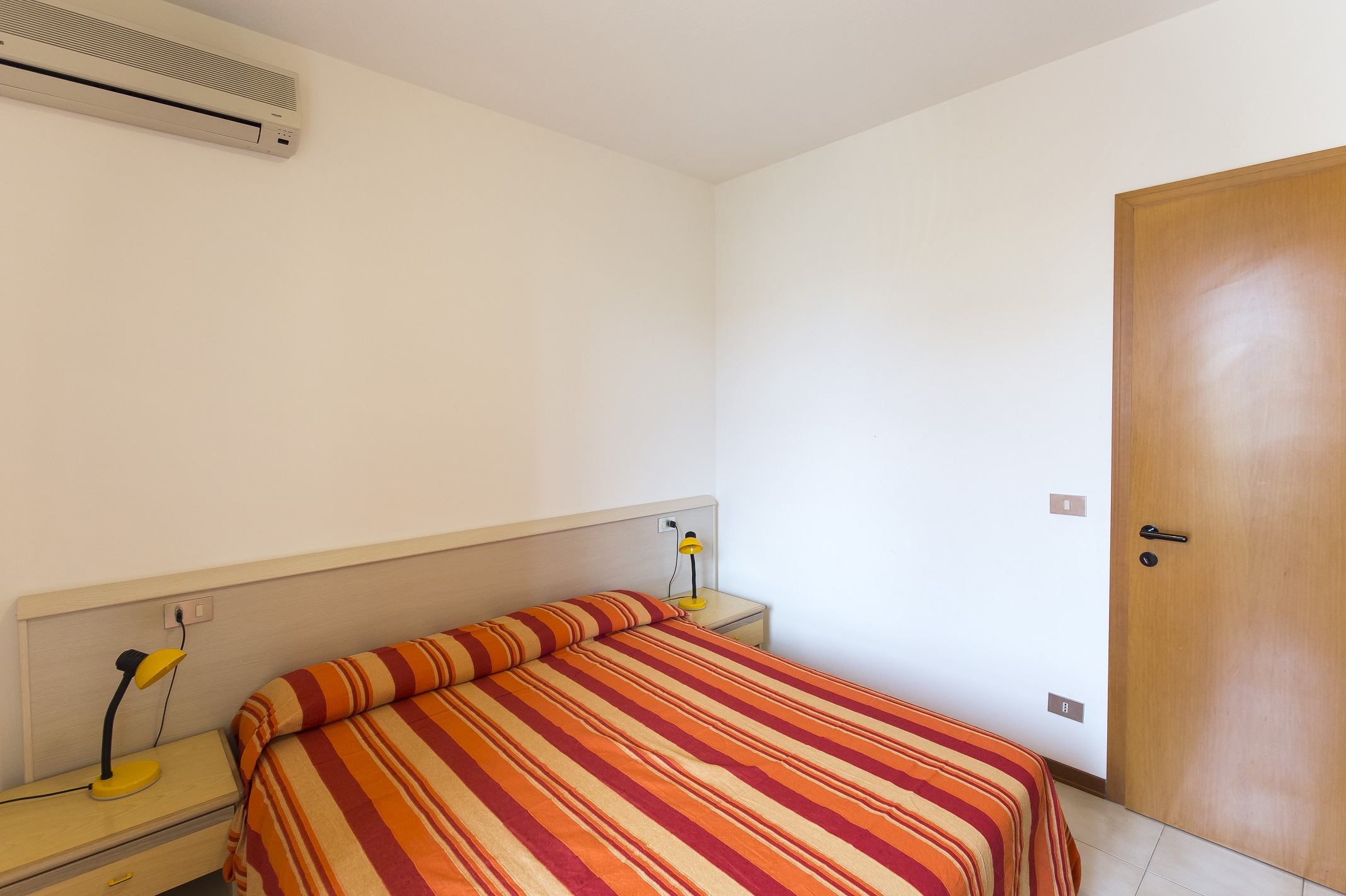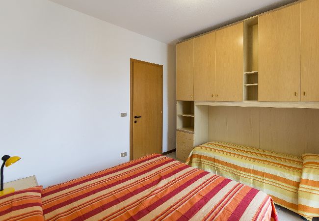 Two-floor terraced house with balcony and terrace. On the ground floor living room with double bed sofa and kitchen corner. On the first floor bedroom with double bed and single bed and bathroom. VILLAGGIO LUNA 2 is an holiday village situated on the West Beach of Caorle, 250 meter from the sea, composed of little terraced houses, all organized in two floors, equipped with air conditioning, safe and numbered parking spaces, some with a private garden, others with a terrace. Swimming pool for adults and children sorrounded by the solarium. In the village there is also a building with lift (door width: 75 cm) with apartments of different sizes, all with balcony.