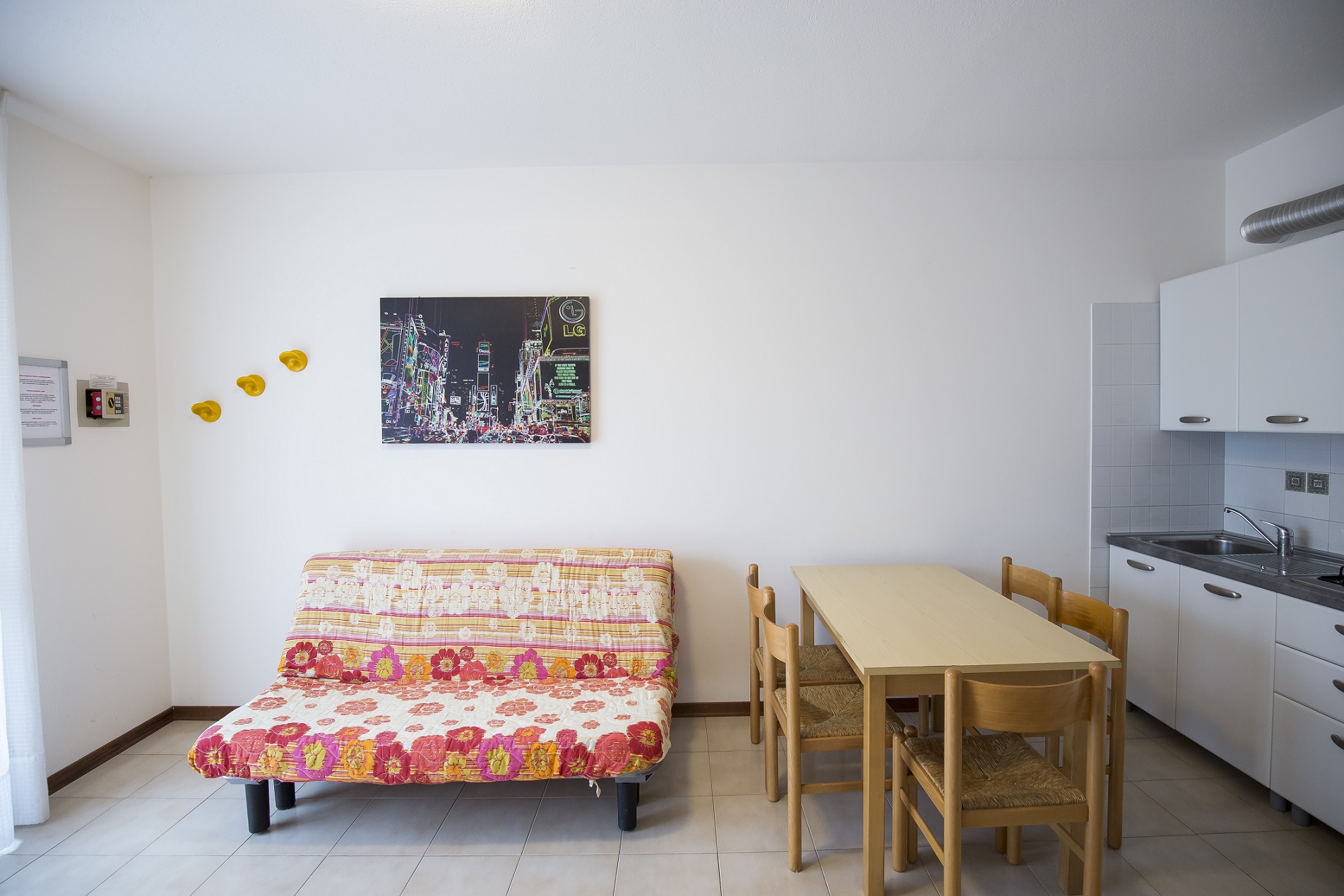 1 bedroom villa on 2 floors. Ground floor: garden, Kitchenette and double sofabed. On the first floor: 1 bathroom, bedroom with double and single bed. "La Quercia" arcade is a real meeting point the entire holiday village area of Caorle Lido Altanea: a wide square, shops, bars, restaurant and many other commercial activities overlooking the covered pedestrian gallery. A spectacular elevated and lighted swimming pool, offers a special setting to this village made of 22 shops and 84 apartments. Fee-paying beach service available (information in Lampo office in Caorle Lido Altanea).