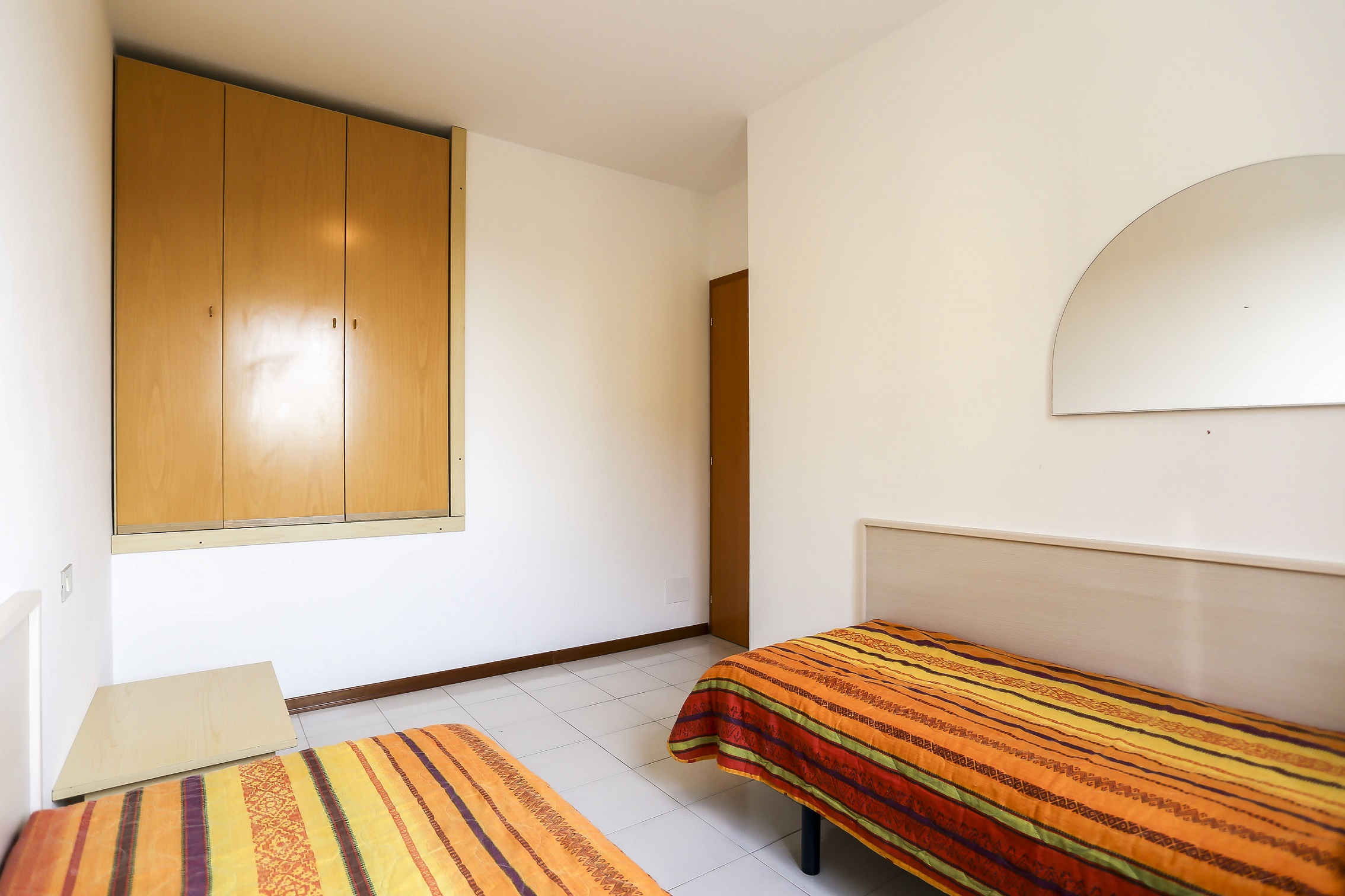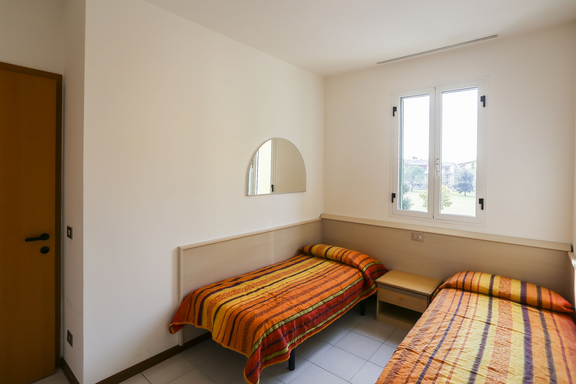 2 bedrooms flat on the first or second floor, Kitchenette and double sofa bed, balcony with table and chairs , 1 bathroom, bedroom with double bed, bedroom with 2 beds, TVSat, air conditioning, safe. Residence "I Tamerici" is a modern block of flats in Caorle Lido Altanea, developed on 3 and 4 floors facing a large swimming pool surrounded by sun beds. Available one and two bedrooms flats. Fee-paying beach service available (information in Lampo office in Caorle Lido Altanea).