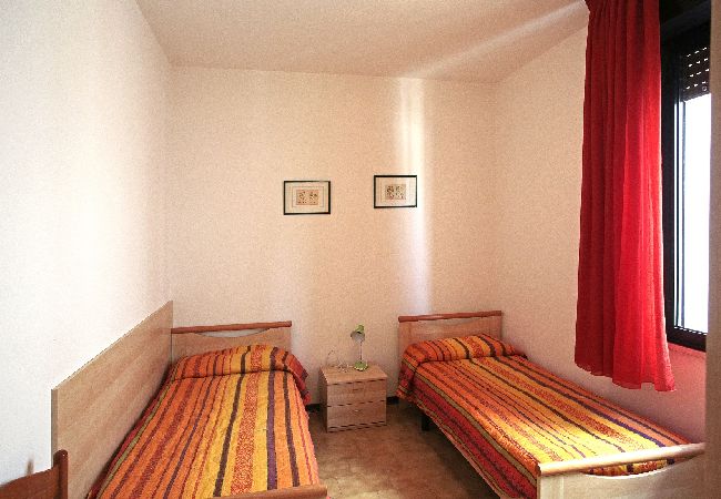 The three-room apartment, located on the ground floor, can accommodate up to 6 people and offers welcoming and bright spaces. It consists of a living room with an equipped kitchenette and a double sofa bed, a private garden ideal for lunches or outdoor relaxation moments, a bathroom with shower, a double bedroom with a third bed, and a small room with a single bed.