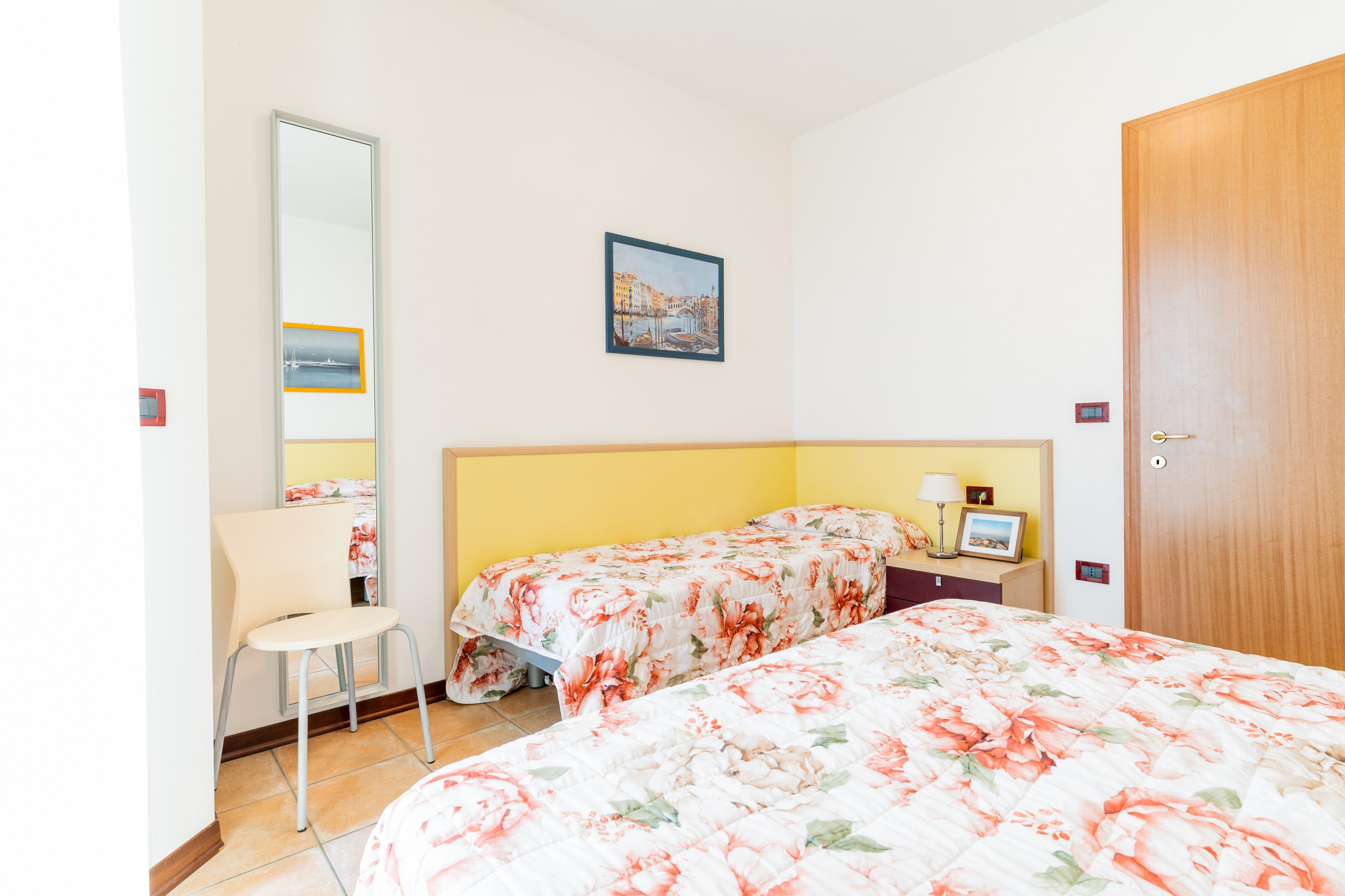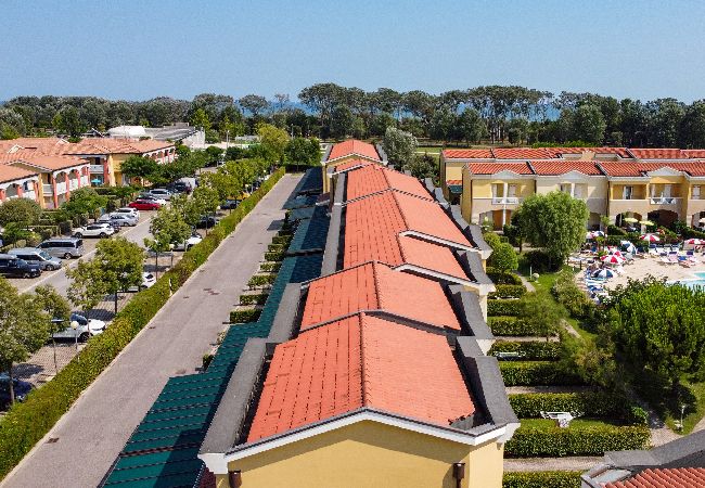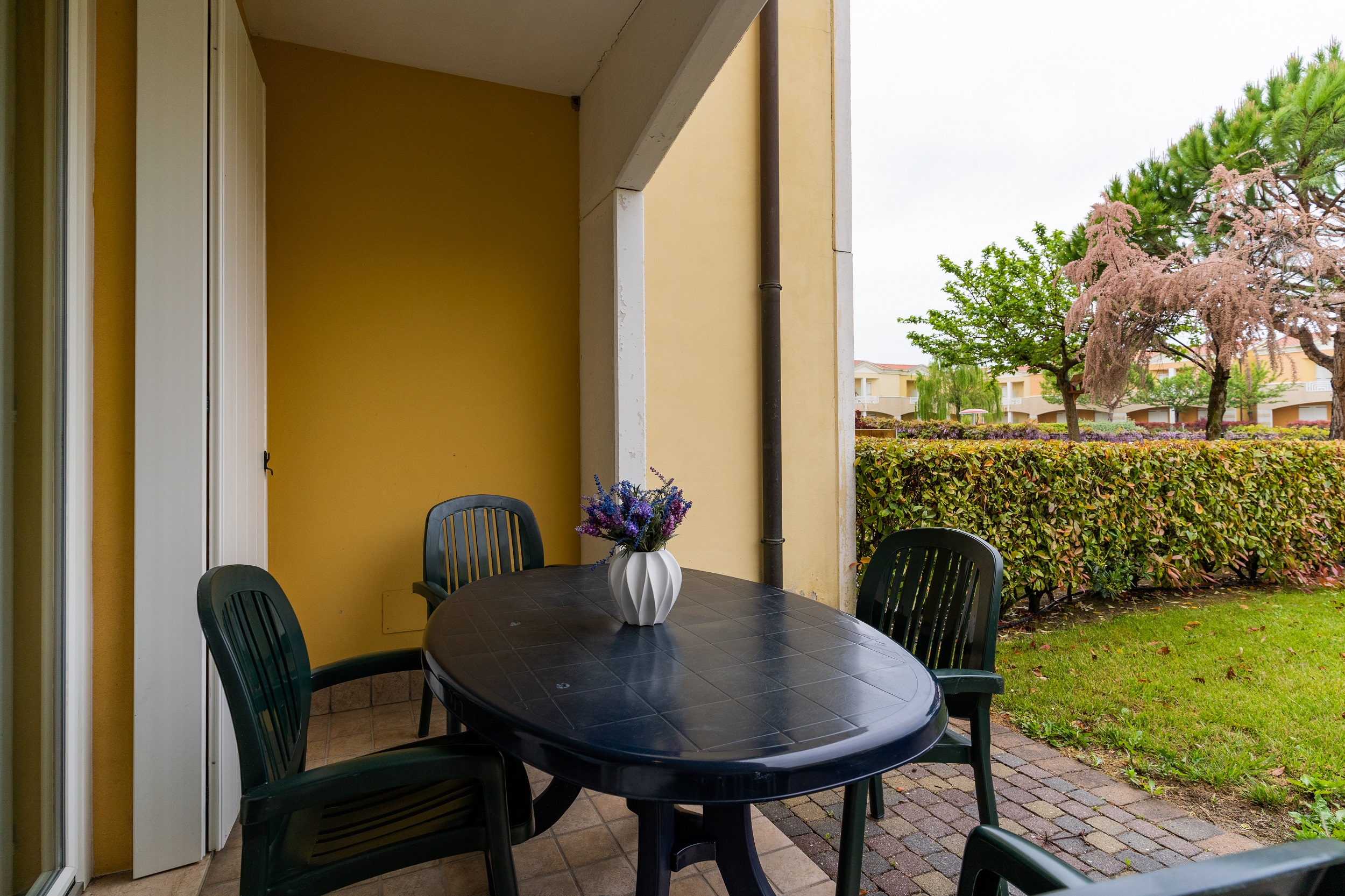 1 bedroom villa on 2 floors. Ground floor: garden, Kitchenette and double sofabed. On the first floor: 1 bathroom, bedroom with double and single bed. "La Quercia" arcade is a real meeting point the entire holiday village area of Caorle Lido Altanea: a wide square, shops, bars, restaurant and many other commercial activities overlooking the covered pedestrian gallery. A spectacular elevated and lighted swimming pool, offers a special setting to this village made of 22 shops and 84 apartments. Fee-paying beach service available (information in Lampo office in Caorle Lido Altanea).