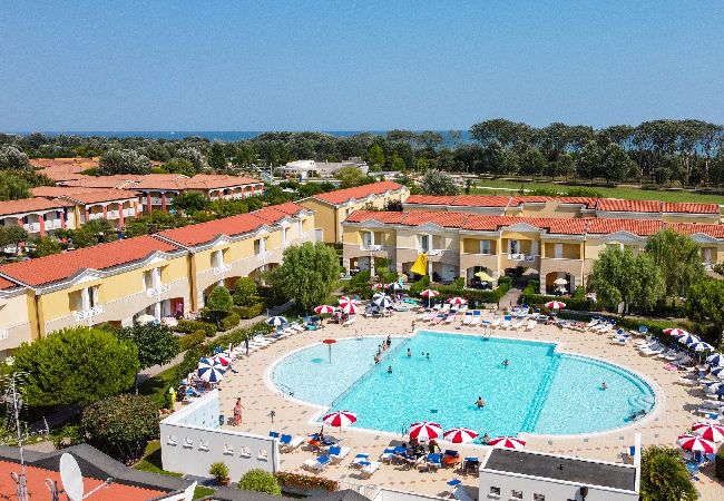 The ACACIE Village is located just 200 metres from the beach, near one of the sea access points. It consists of 76 terraced houses, arranged on two floors and organised around a central swimming pool for adults and children, surrounded by a large terrace with sunbeds and umbrellas. In the common area, there is a children's play area and a barbecue zone, ideal for moments of relaxation and family conviviality.