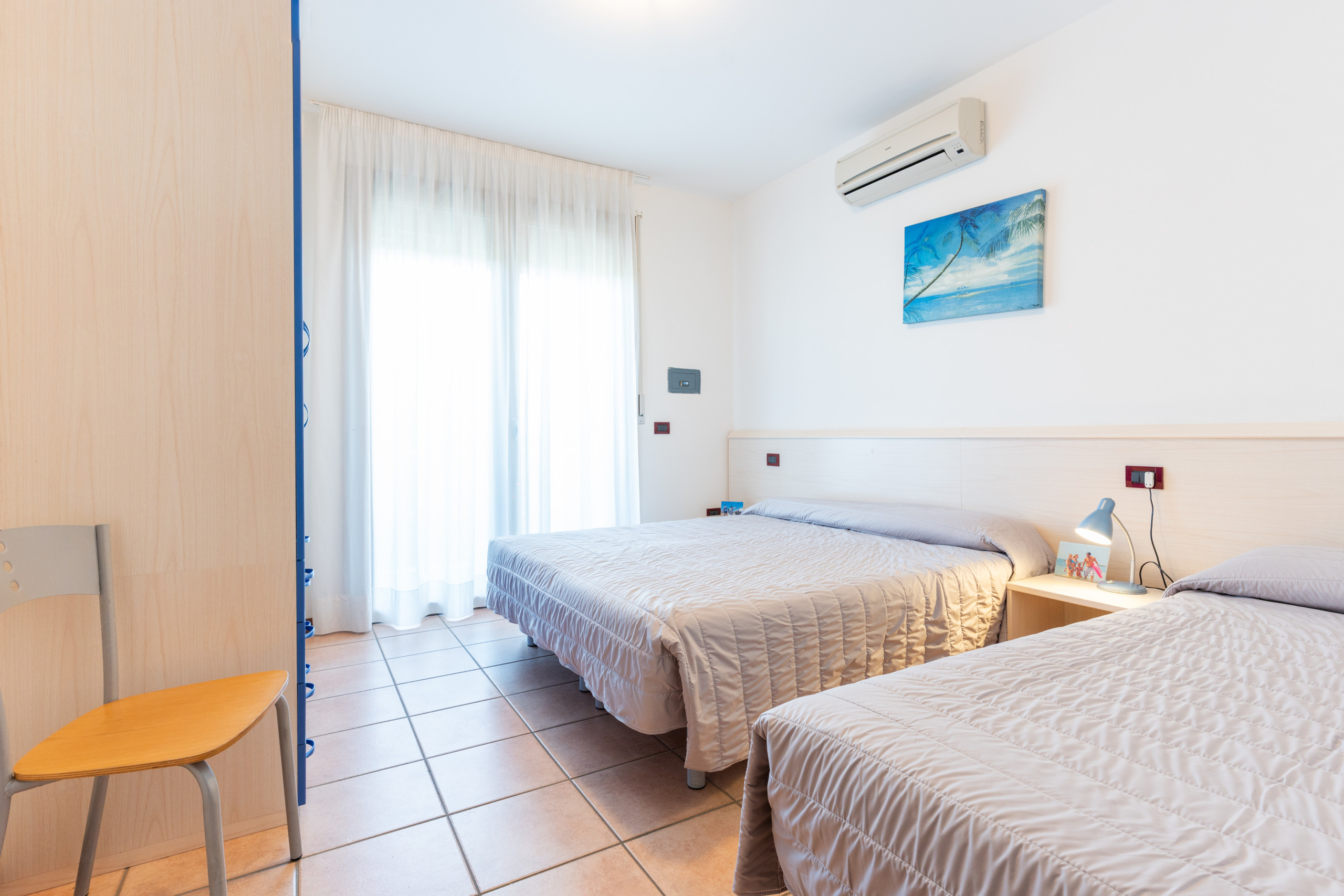• A spacious bedroom with a double bed and a single bed;