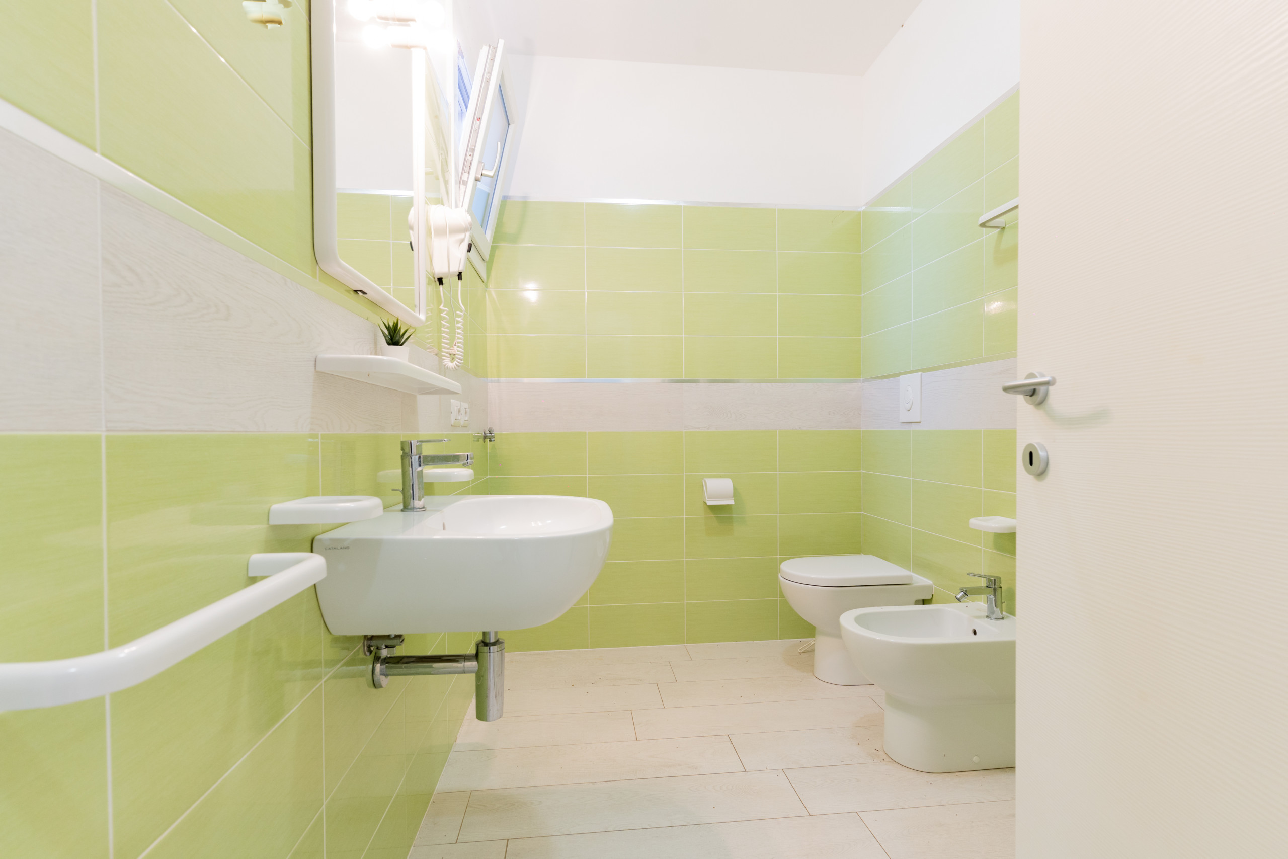 The village consists of 93 apartments of various types, distributed across three floors and served by a lift from the basement. You can choose between two-room and three-room apartments (also duplex), all furnished with care and complete with: air conditioning, SAT TV, safe, microwave, hairdryer, electric coffee maker and parking space (in garage or uncovered).