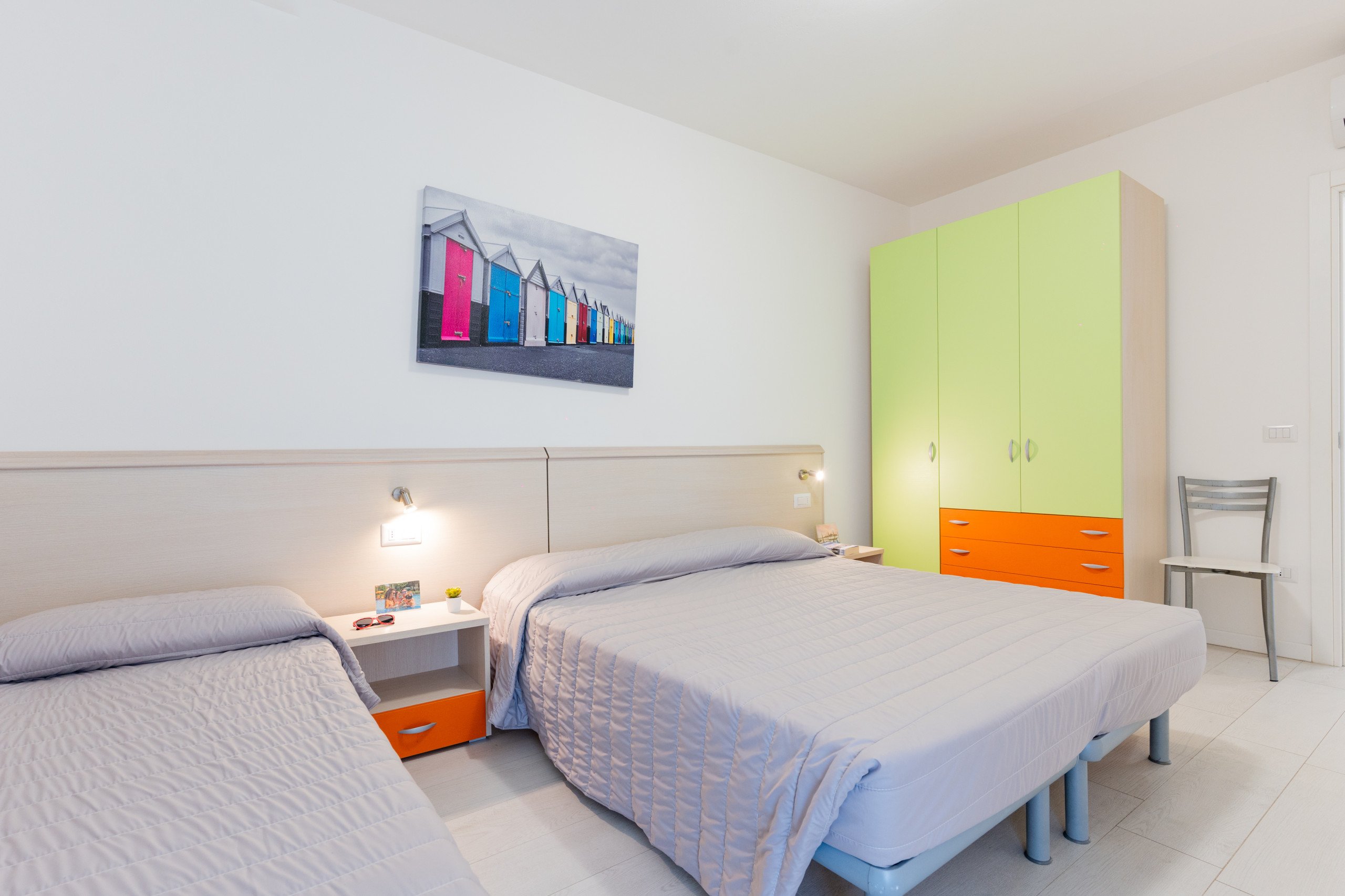 • a spacious bedroom with double bed and single bed;