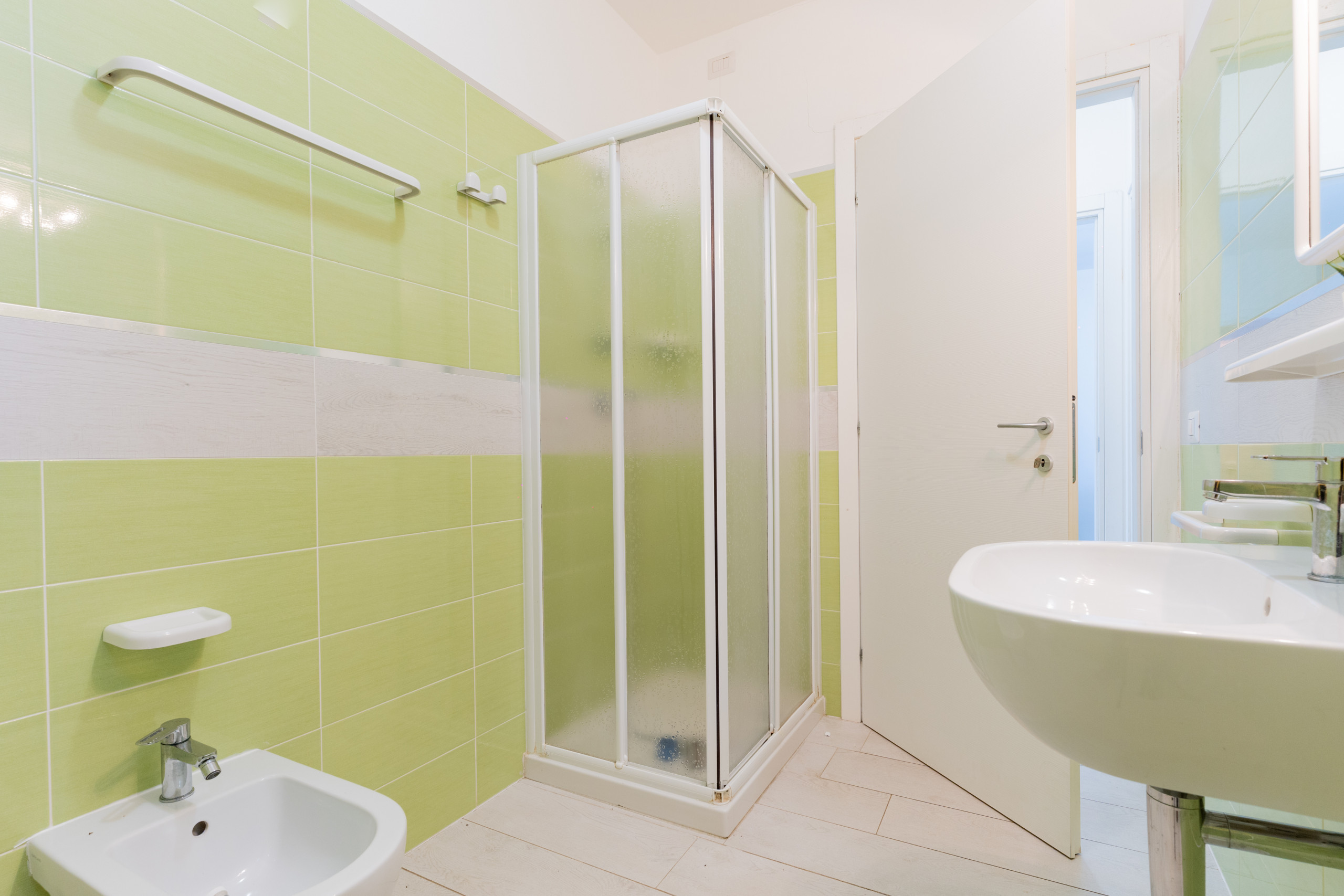 Inside you will find a welcoming living room with an equipped kitchenette and a French double sofa bed, ideal for moments of relaxation. There are two bedrooms: one with a double bed and an additional single bed, the other with two separate single beds, as well as a spacious bathroom with a shower enclosure.