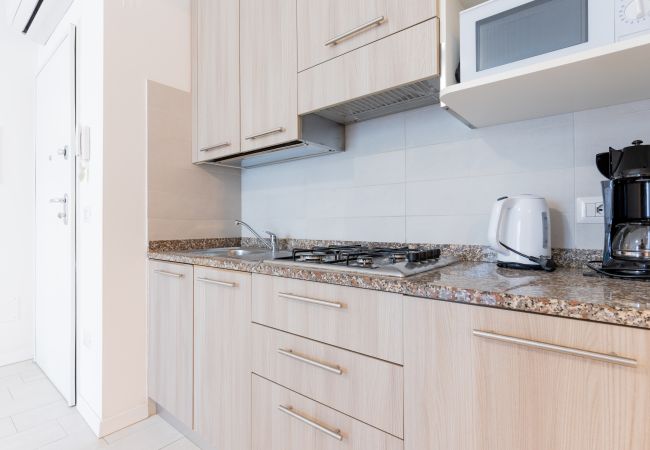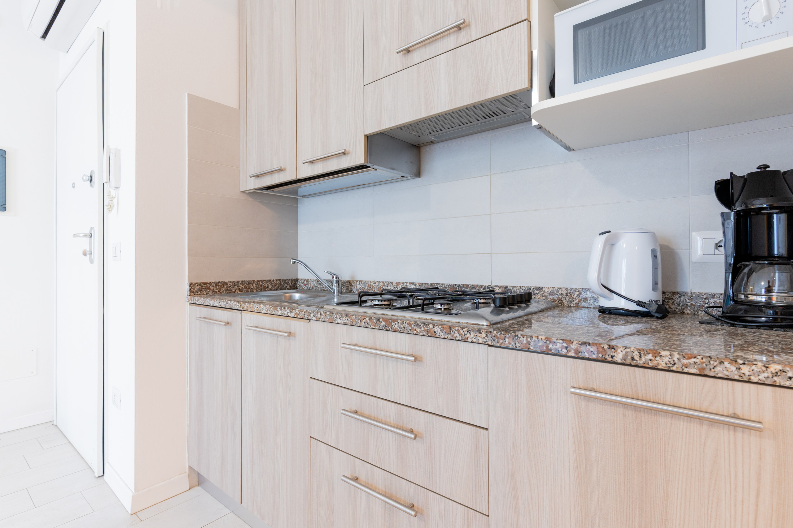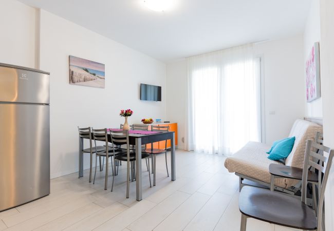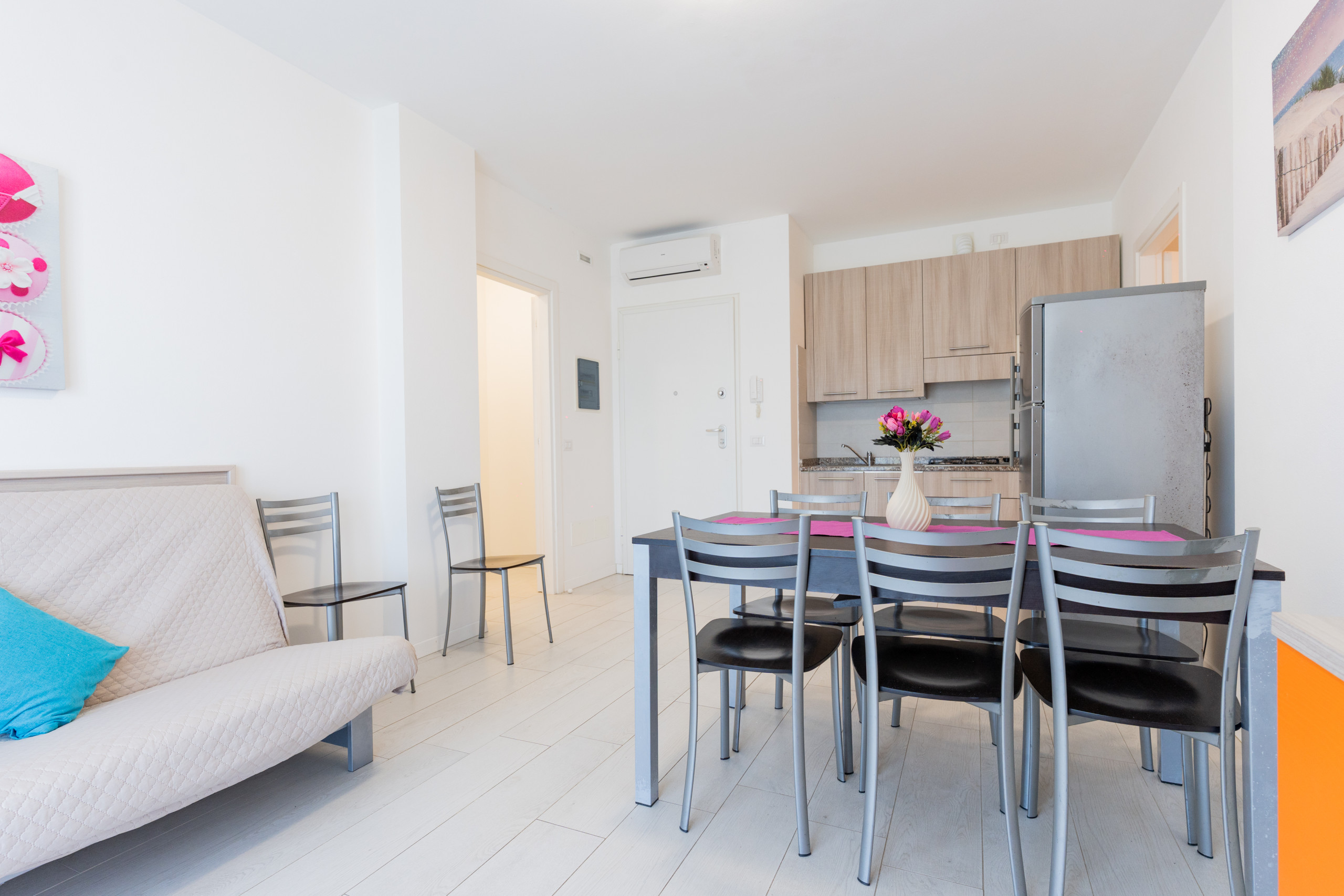 • bright living room with equipped kitchenette, dining table, French sofa bed and access to terrace or balcony;