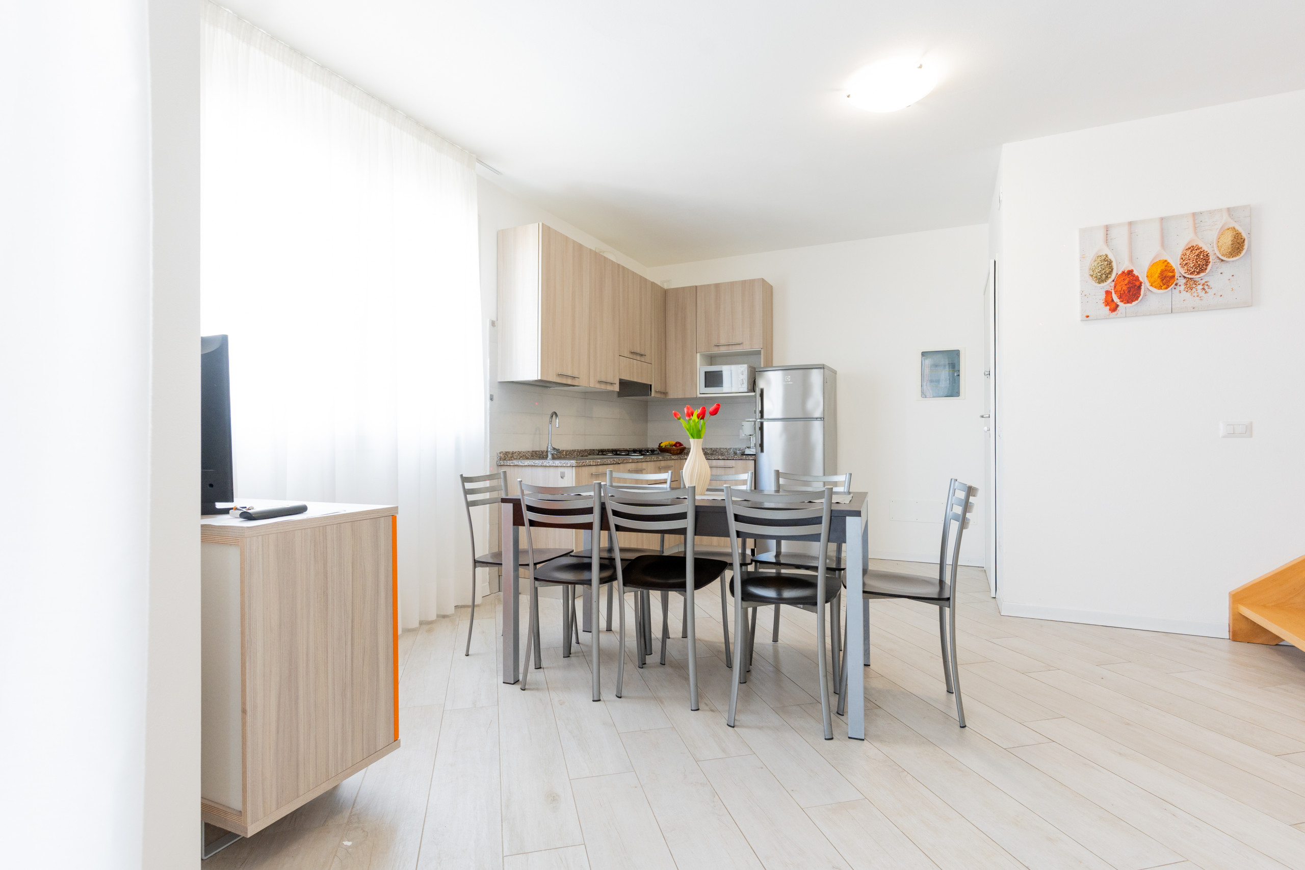The village consists of 93 apartments of various types, distributed across three floors and served by a lift from the basement. You can choose between two-room and three-room apartments (also duplex), all furnished with care and complete with: air conditioning, SAT TV, safe, microwave, hairdryer, electric coffee maker and parking space (in garage or uncovered).