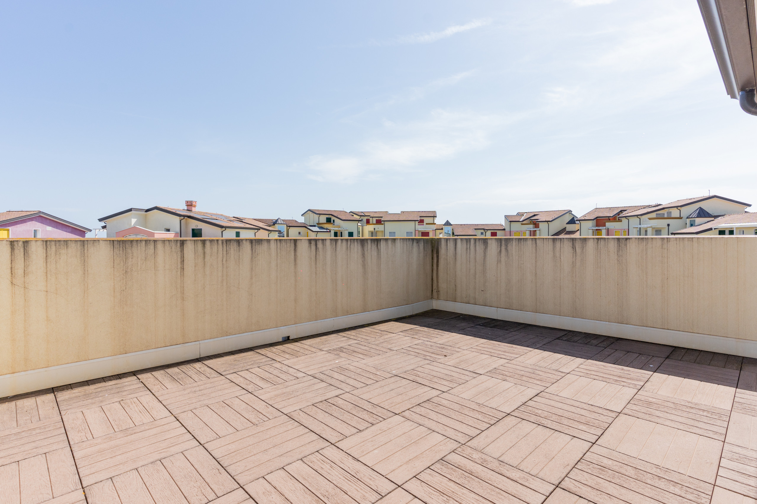 Beautiful modern four-room apartments of approximately 90 sqm, located on the upper floors and developed over two levels connected by an internal staircase. Each unit is equipped with a large balcony, ideal for enjoying meals and dinners outdoors, with a view of the internal avenue or the swimming pool.