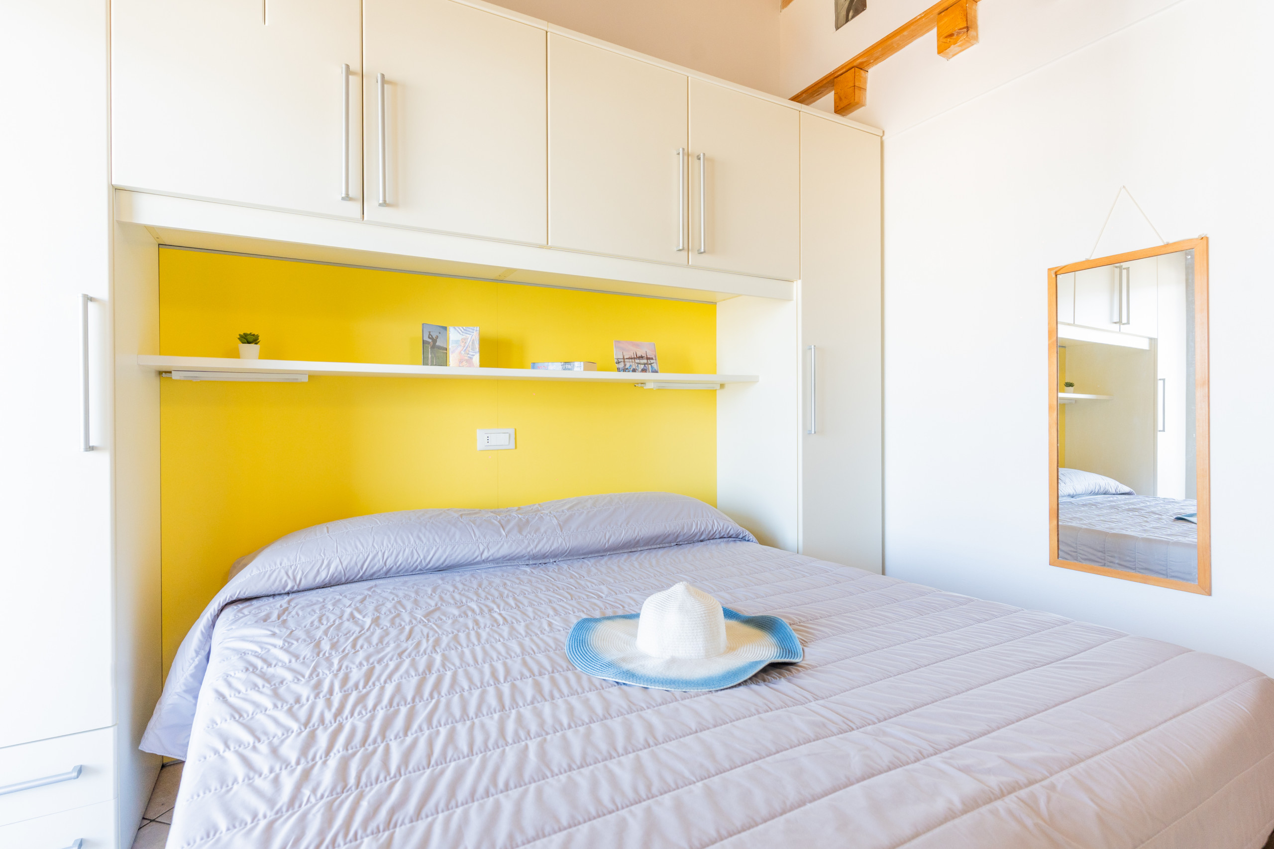 The apartment, arranged over two floors with an internal staircase, features a spacious bedroom with a queen-size bed and bathroom on the first floor and a sofa bed in the living room on the ground floor, ideal for comfortably accommodating up to 4 people. In the bedroom, you can also find a safe.