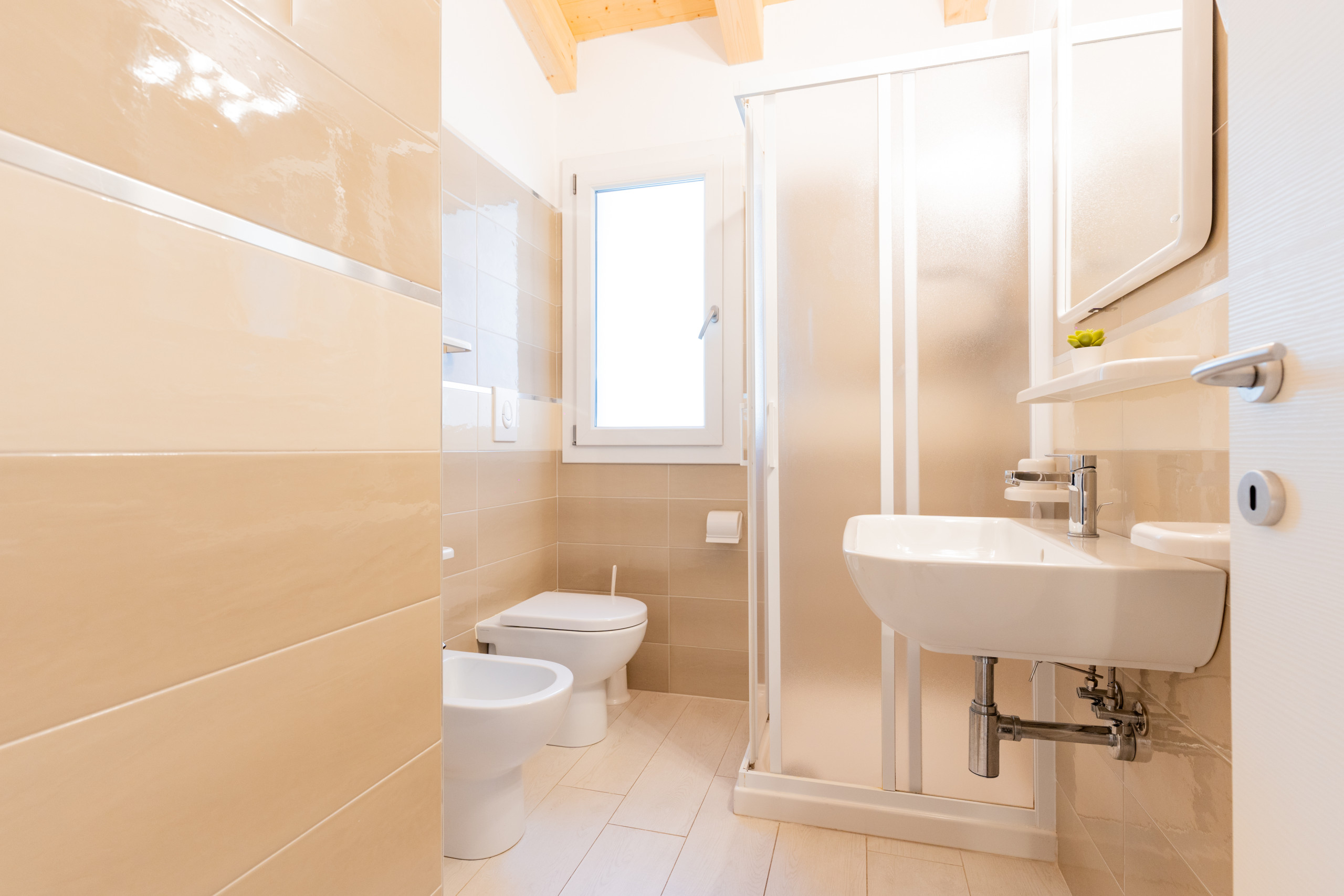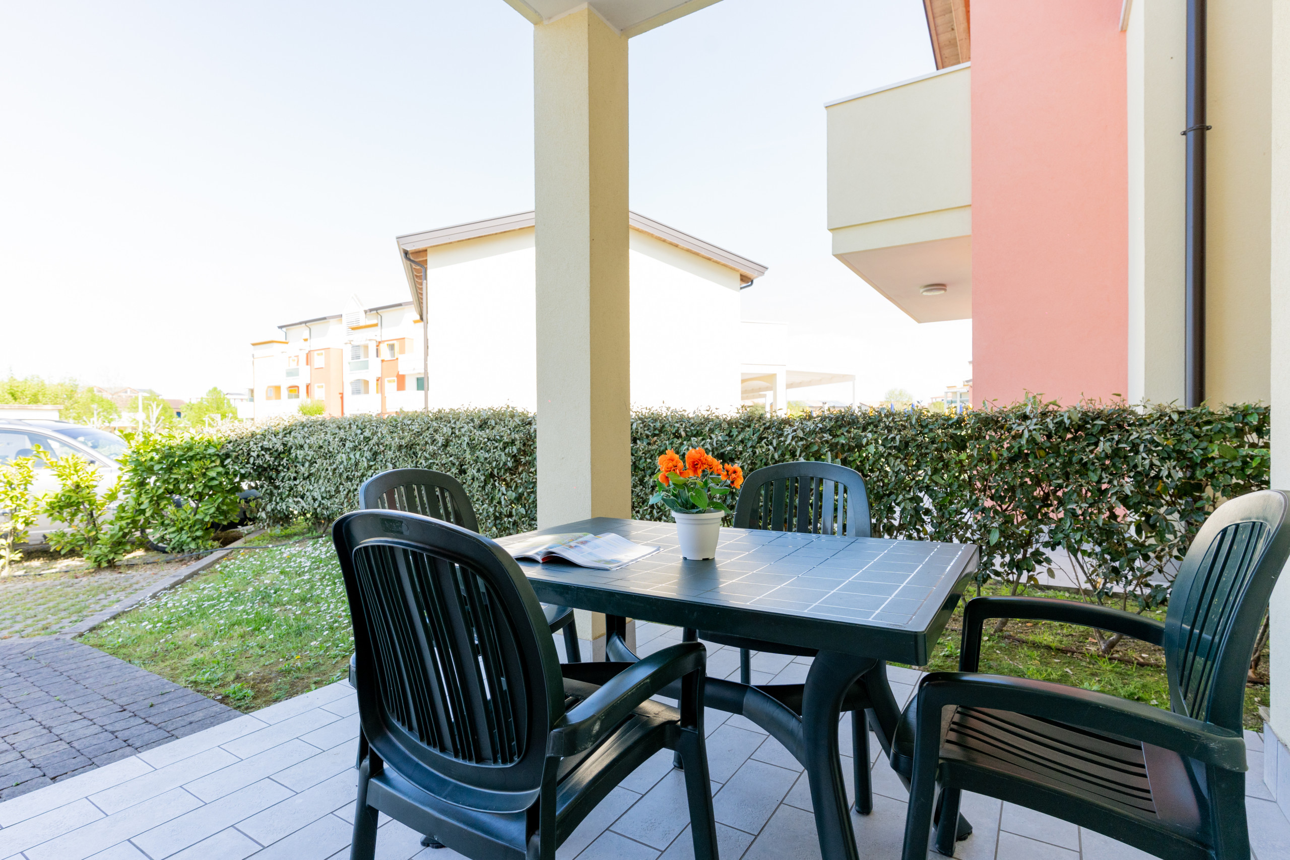 The welcoming three-room villas (approximately 70 m²) are arranged on two floors and equipped with a private garden and furnished porch, ideal for enjoying pleasant lunches and dinners outdoors.