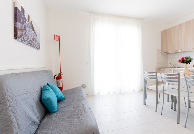 1 bedroom villa on 2 floors. Ground floor: garden, Kitchenette and double sofabed. On the first floor: 1 bathroom, bedroom with double and single bed. "La Quercia" arcade is a real meeting point the entire holiday village area of Caorle Lido Altanea: a wide square, shops, bars, restaurant and many other commercial activities overlooking the covered pedestrian gallery. A spectacular elevated and lighted swimming pool, offers a special setting to this village made of 22 shops and 84 apartments. Fee-paying beach service available (information in Lampo office in Caorle Lido Altanea).