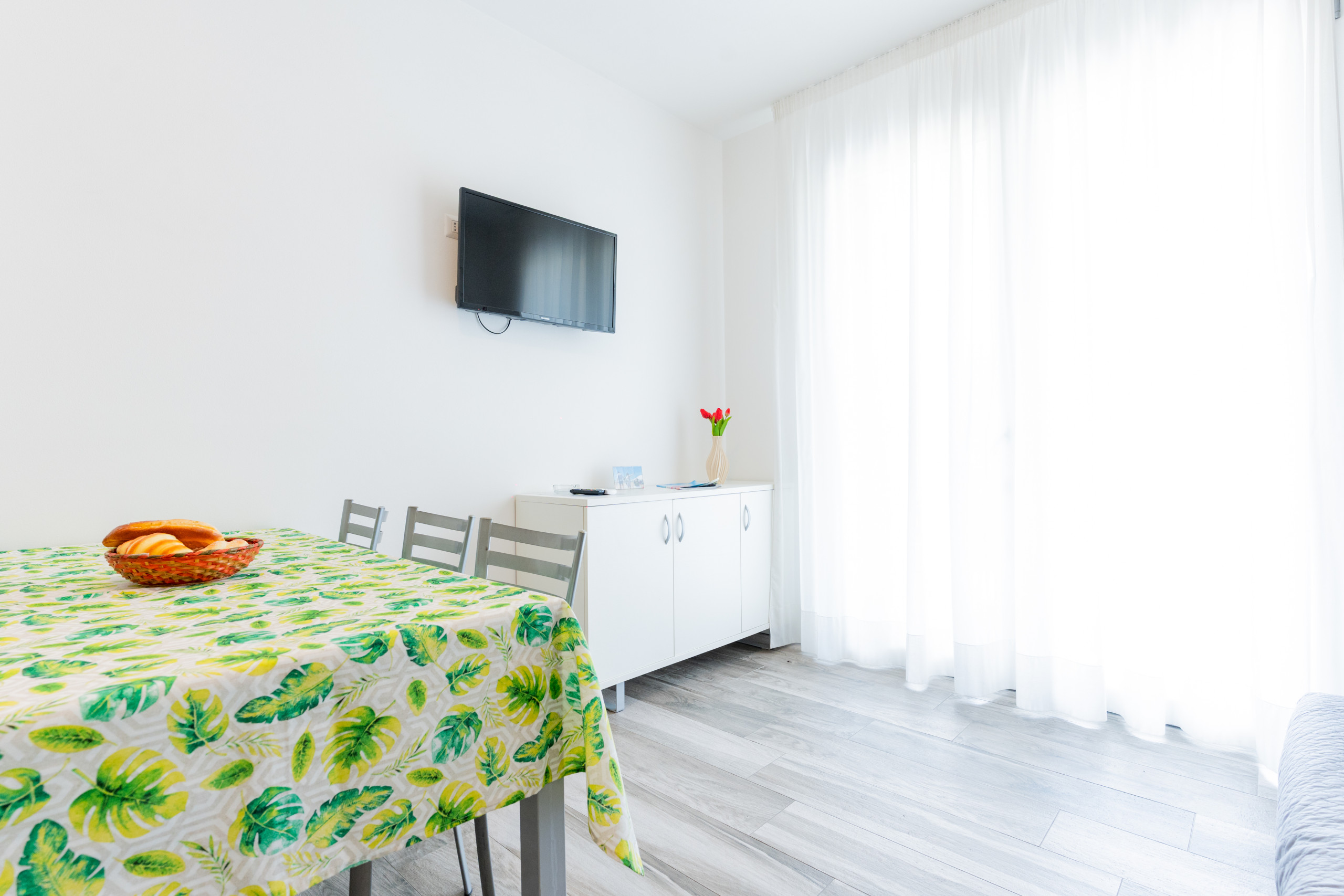 The two-room Mimose apartments (approximately 55 m²) are located on the ground floor and feature a private garden furnished with a table and chairs, perfect for enjoying pleasant lunches and dinners outdoors.
