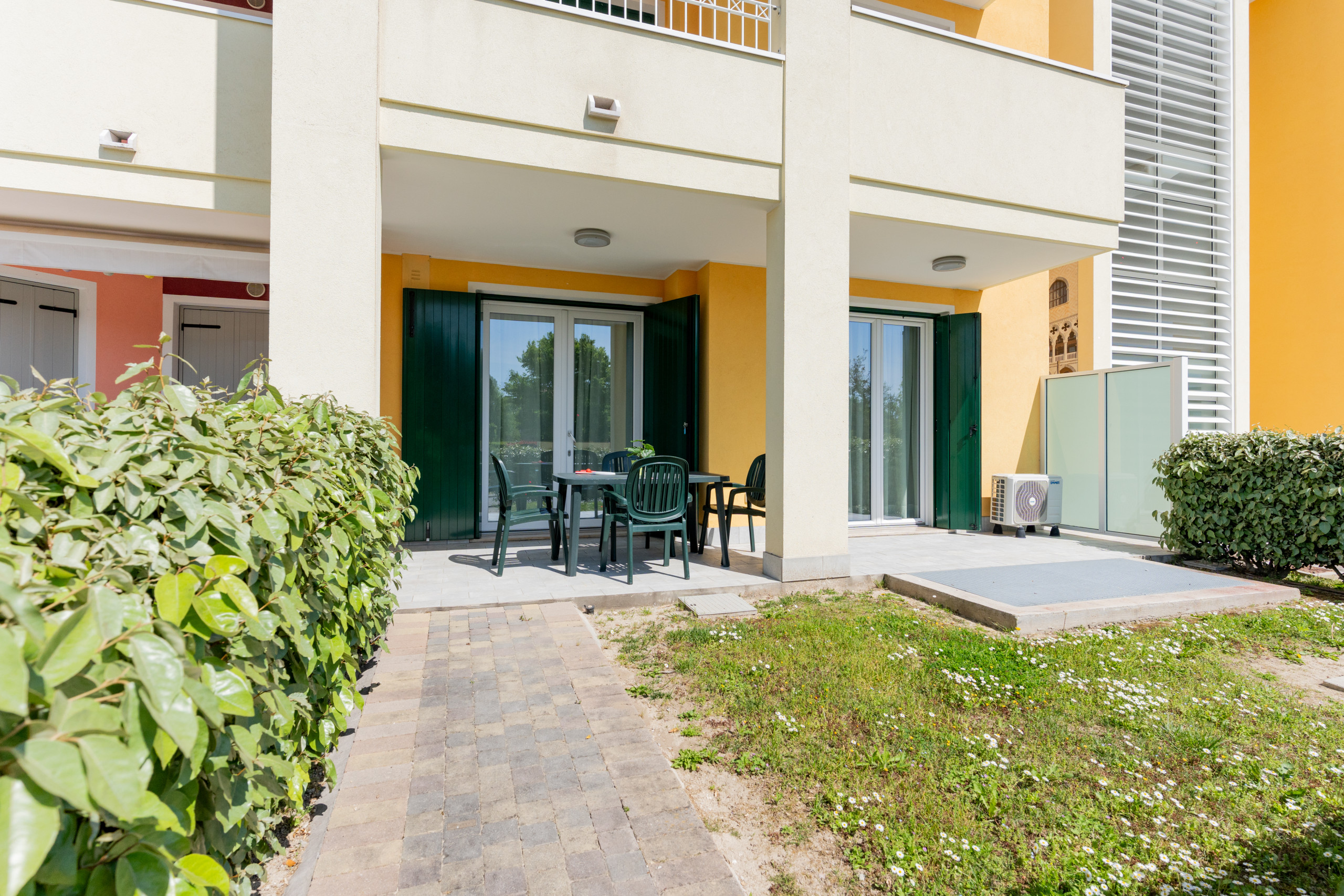 The villas enjoy different exposures: towards the swimming pool or towards the internal driveway. Some units have a garden and furnished porch, others have only a porch, always equipped with an outdoor table and chairs, ideal for outdoor lunches and dinners.