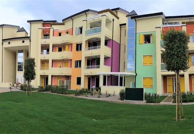 1 bedroom villa on 2 floors. Ground floor: garden, Kitchenette and double sofabed. On the first floor: 1 bathroom, bedroom with double and single bed. "La Quercia" arcade is a real meeting point the entire holiday village area of Caorle Lido Altanea: a wide square, shops, bars, restaurant and many other commercial activities overlooking the covered pedestrian gallery. A spectacular elevated and lighted swimming pool, offers a special setting to this village made of 22 shops and 84 apartments. Fee-paying beach service available (information in Lampo office in Caorle Lido Altanea).