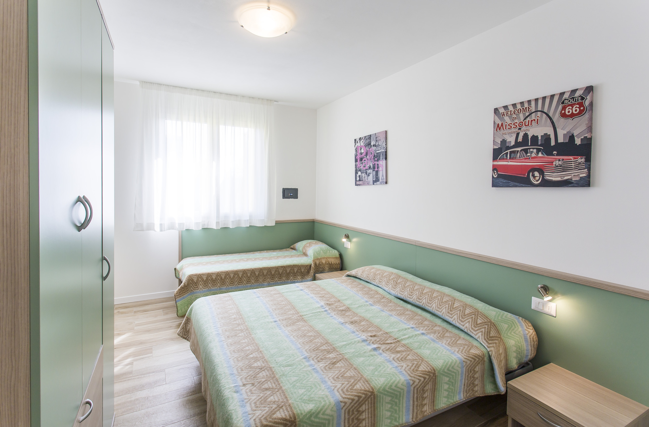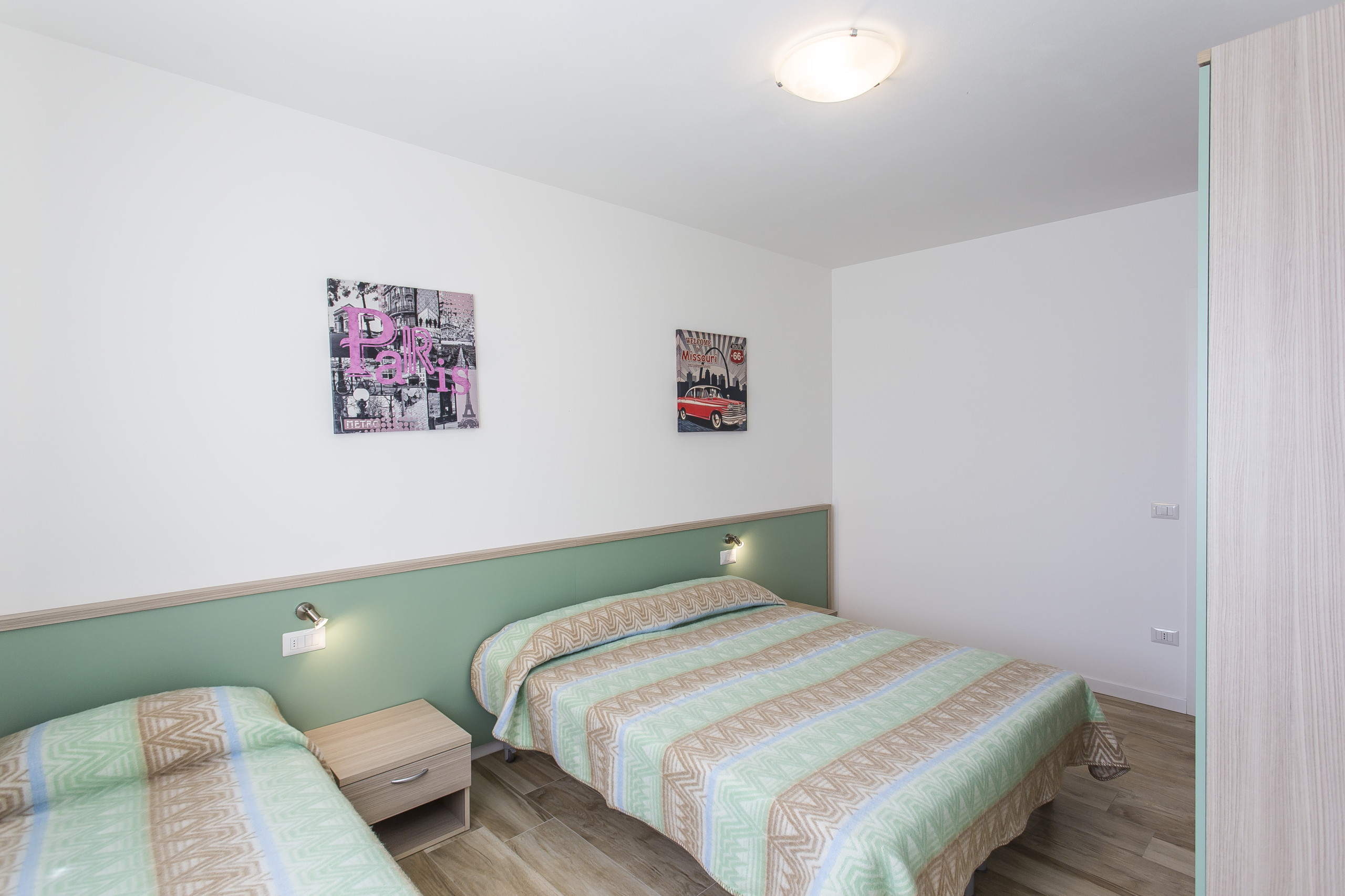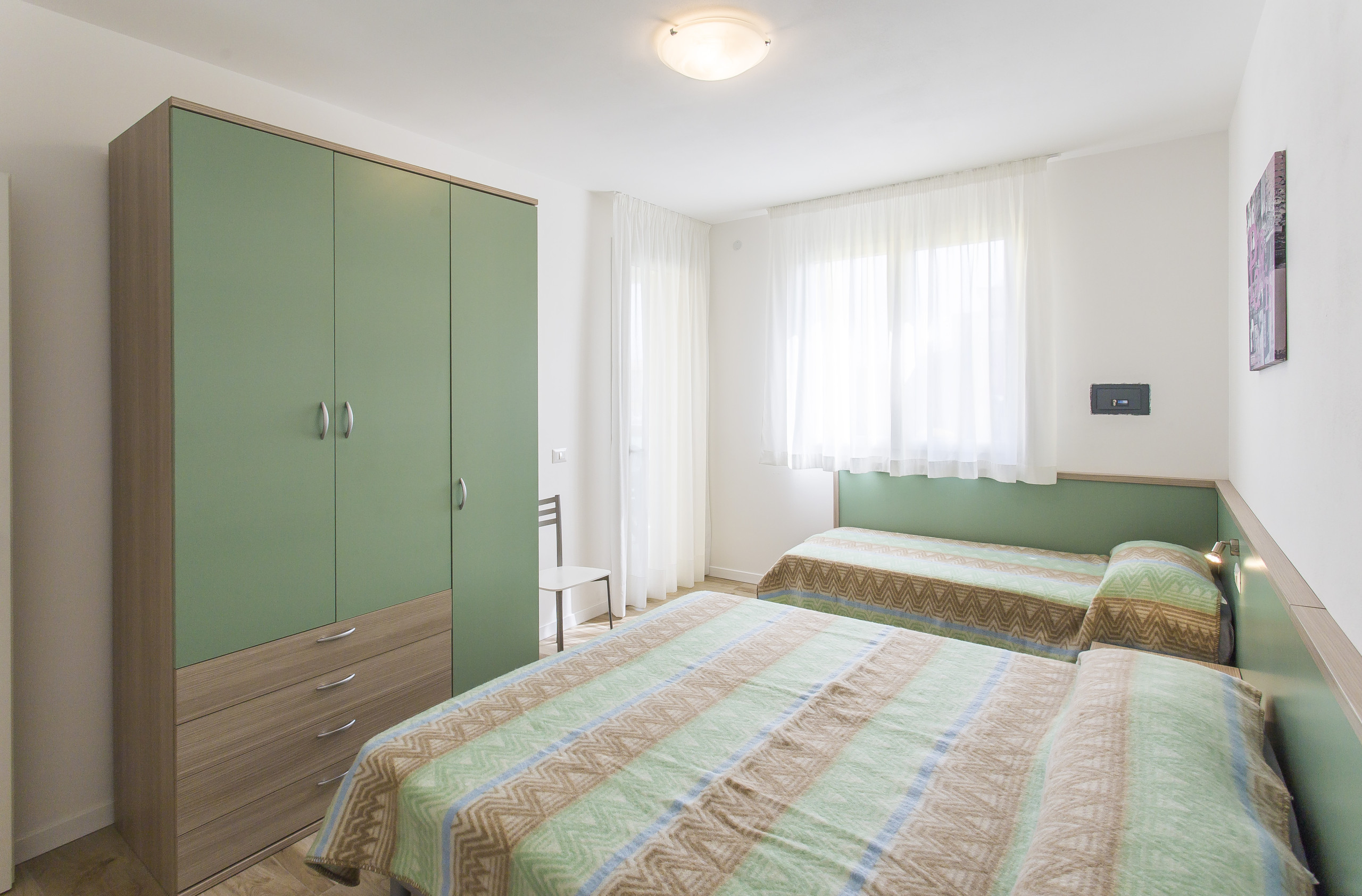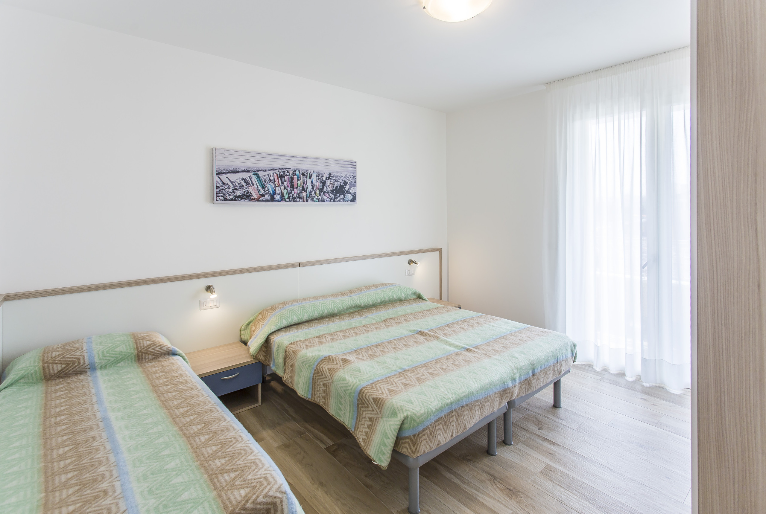 - second bedroom with double bed and single bed;