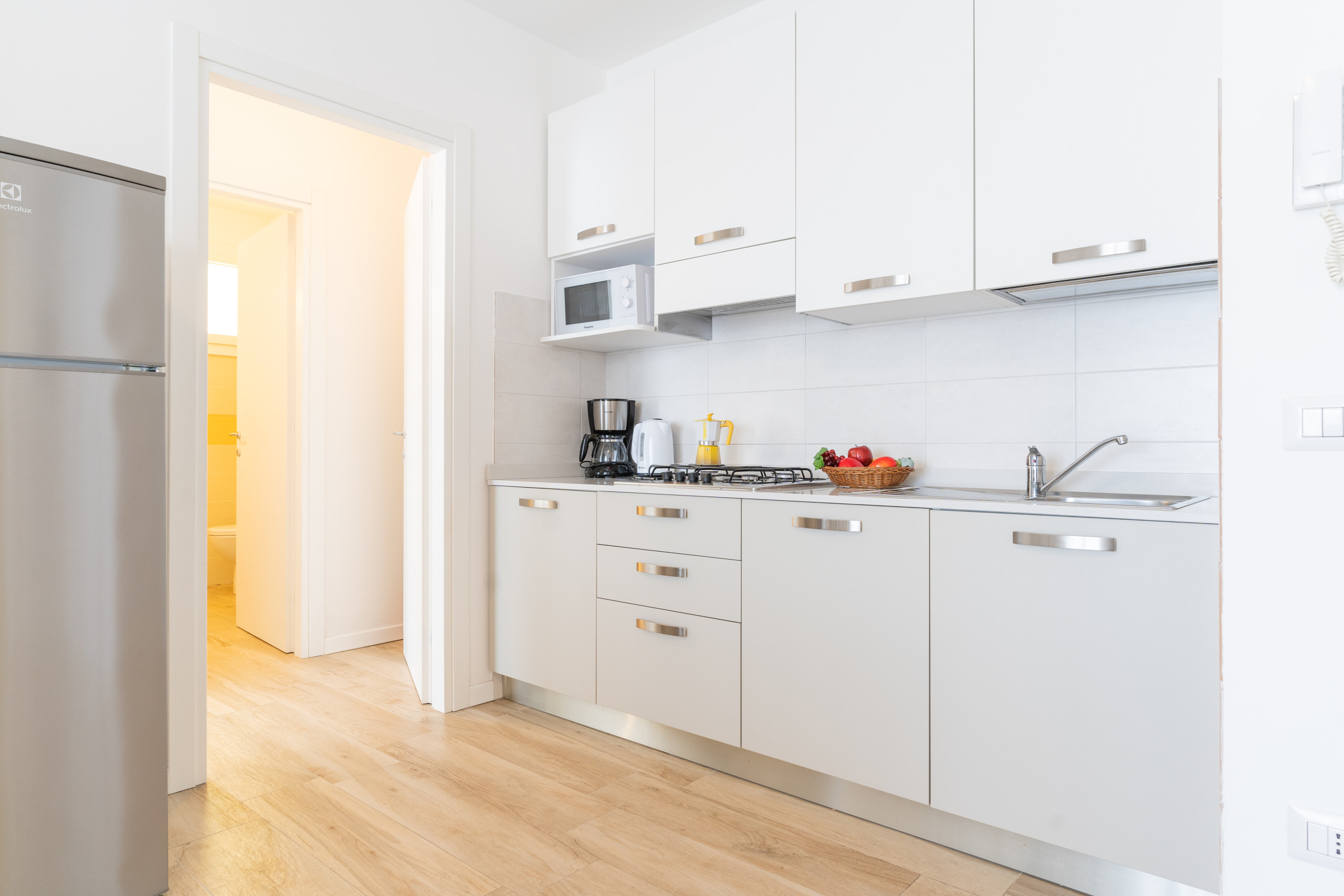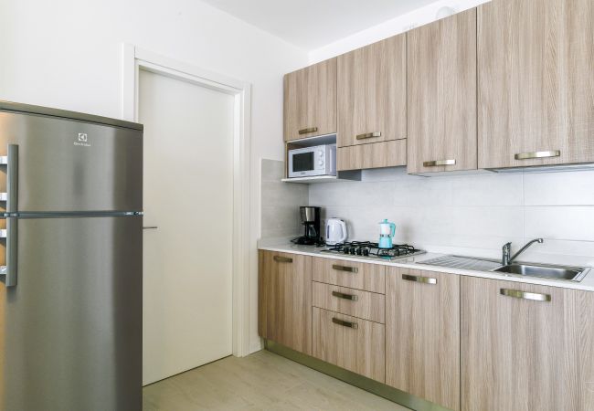 Inside, the apartments feature a living room with an equipped kitchenette and a French double sofa bed, a welcoming and functional environment.