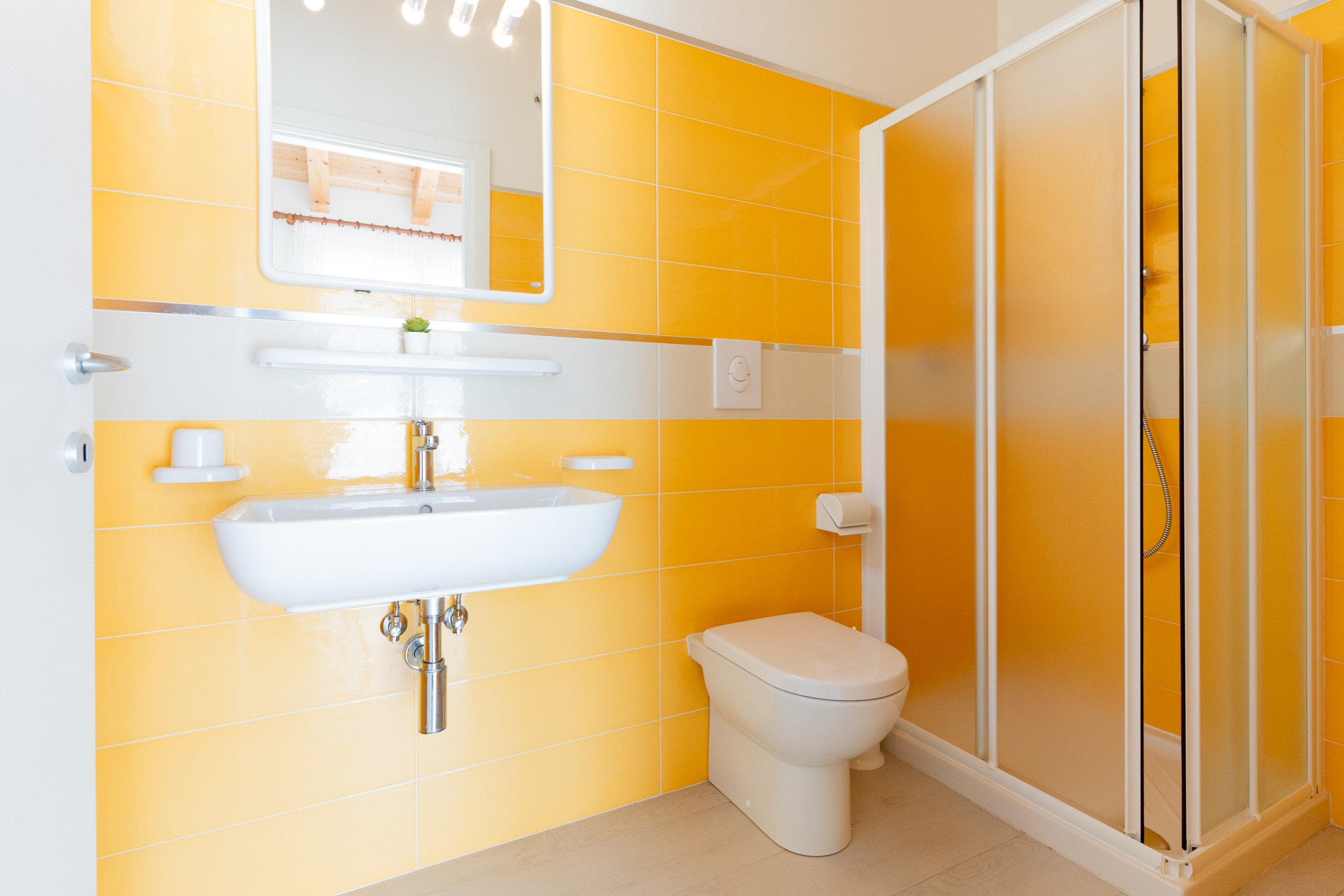 On the third floor, there is a living room with an equipped kitchenette and a French sofa bed, a spacious double bedroom with an added single bed, and a bathroom with a shower. Going up to the fourth floor, accessible via an internal staircase, there is an additional bedroom, which can be configured with a double bed, or a double bed and a single bed, or two separate single beds, along with a large bathroom with a shower.
