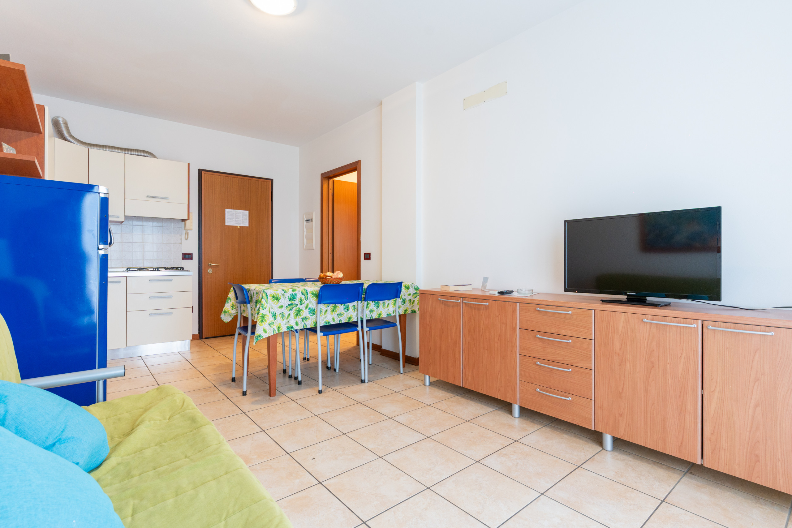 Two-room apartments of around 45 sq m are ideal for a relaxing and comfortable holiday. Located on the ground floor or on the first and second floors, they offer a balcony with a view of the internal avenue, while others have a view of the swimming pool.