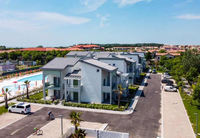 The Tigli Village is located in a quiet position, just 500 metres from the beach, easily accessible thanks to the free shuttle service. The facility includes independent villas arranged on two floors, each with a private garden, and lift-served apartments, ideal for families and groups of friends.
