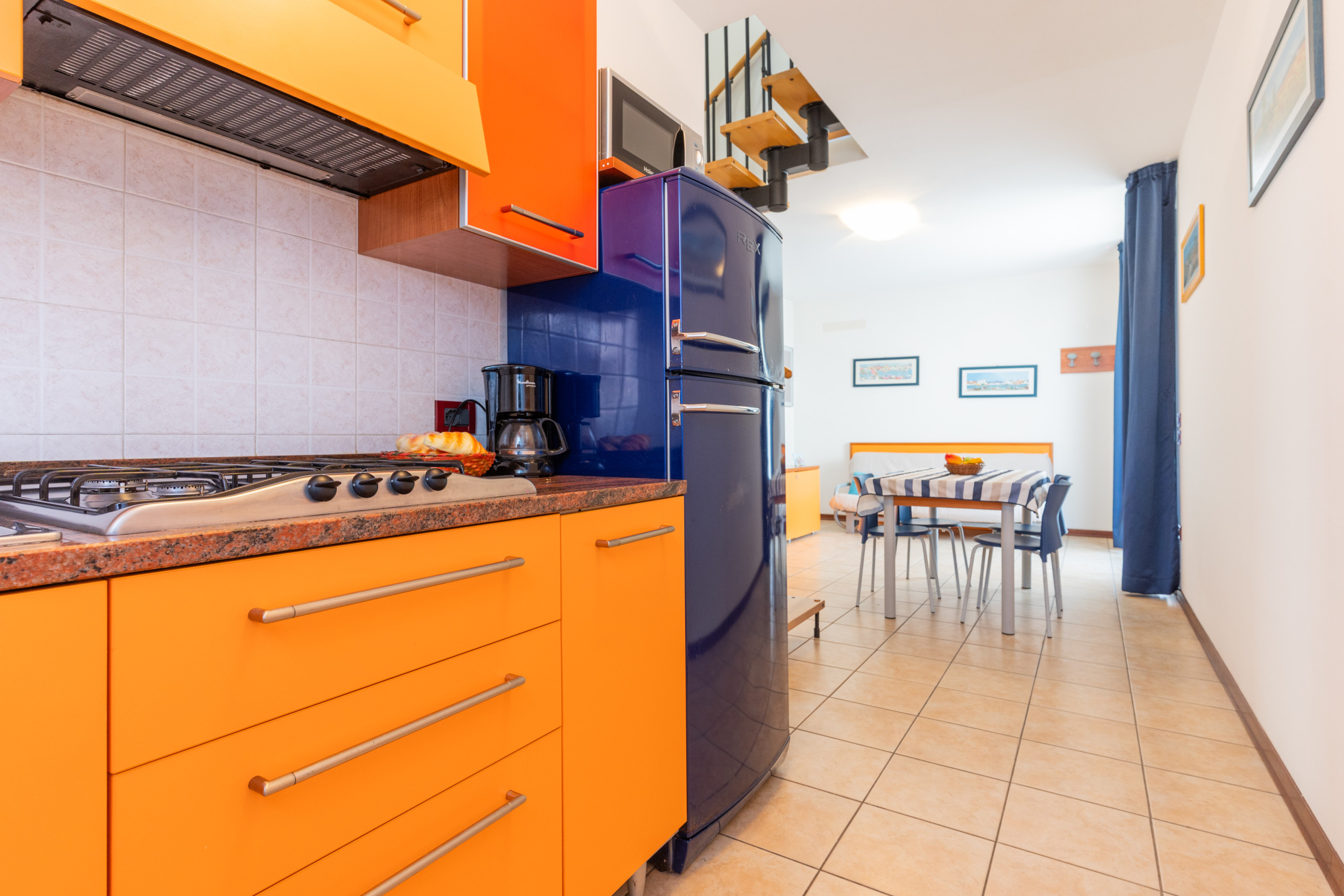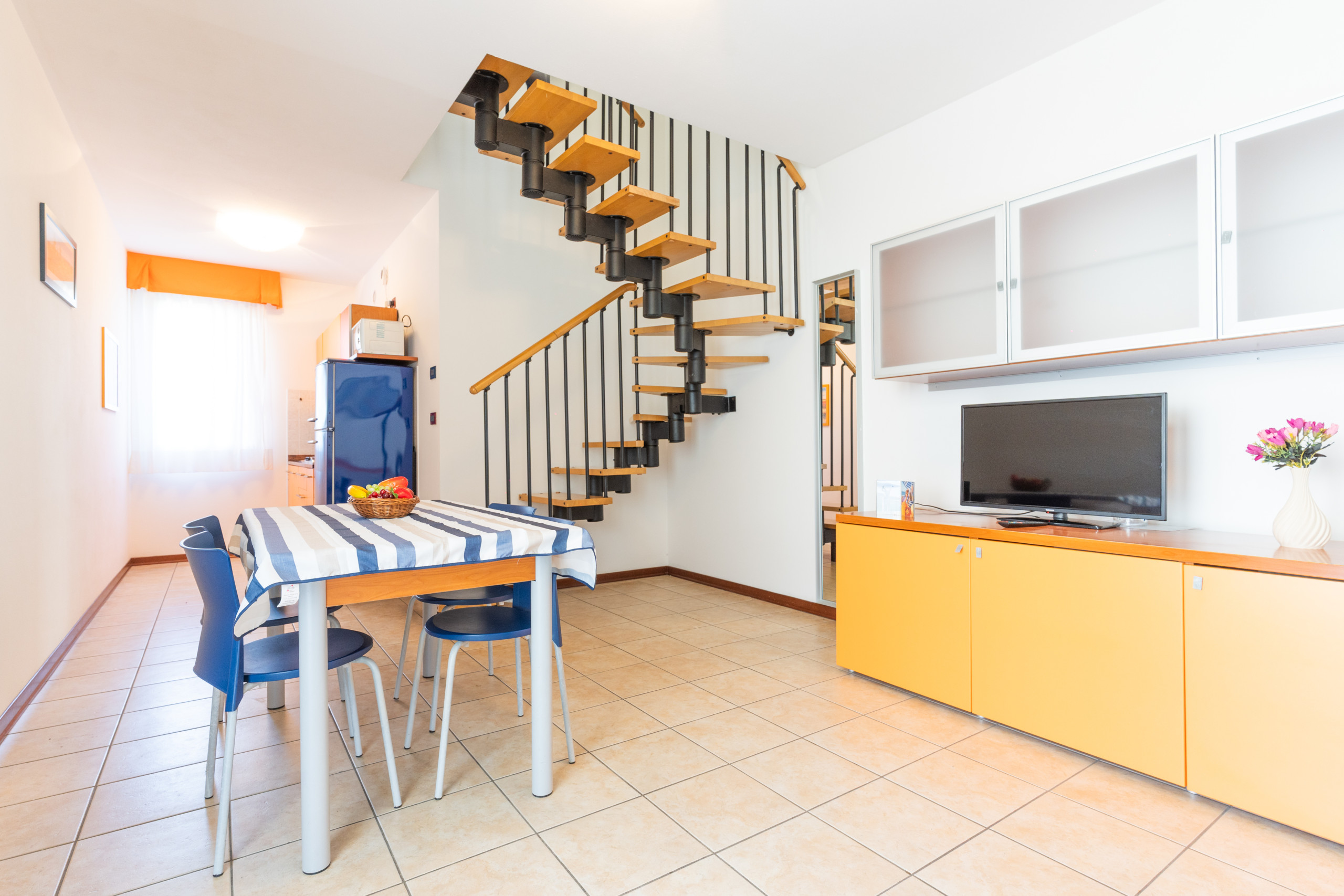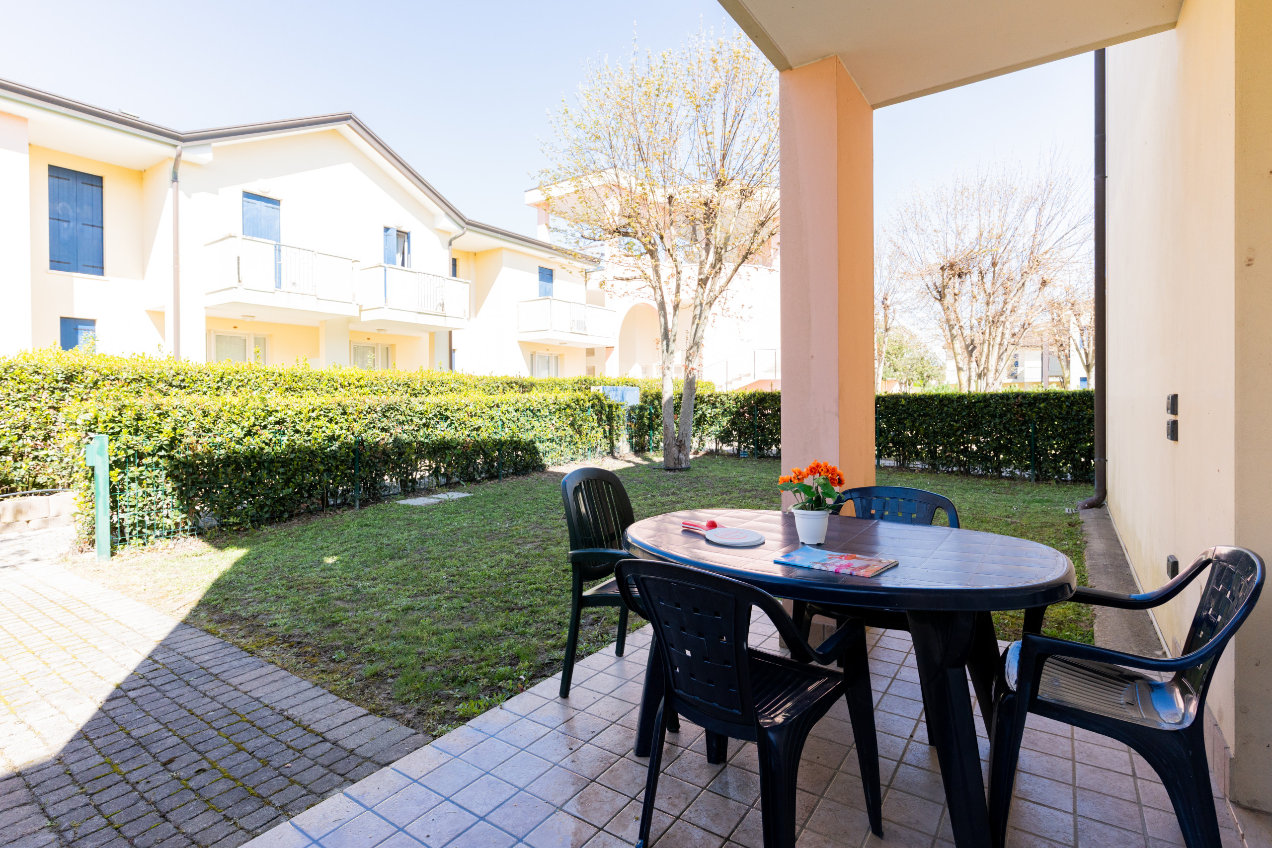 1 bedroom villa on 2 floors. Ground floor: garden, Kitchenette and double sofabed. On the first floor: 1 bathroom, bedroom with double and single bed. "La Quercia" arcade is a real meeting point the entire holiday village area of Caorle Lido Altanea: a wide square, shops, bars, restaurant and many other commercial activities overlooking the covered pedestrian gallery. A spectacular elevated and lighted swimming pool, offers a special setting to this village made of 22 shops and 84 apartments. Fee-paying beach service available (information in Lampo office in Caorle Lido Altanea).