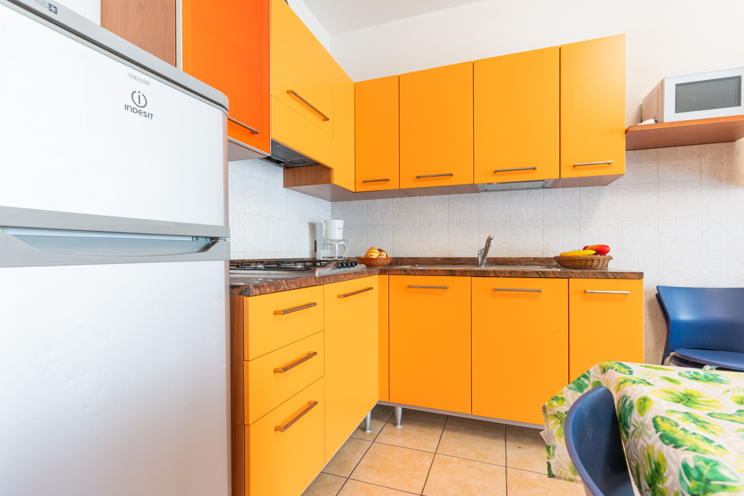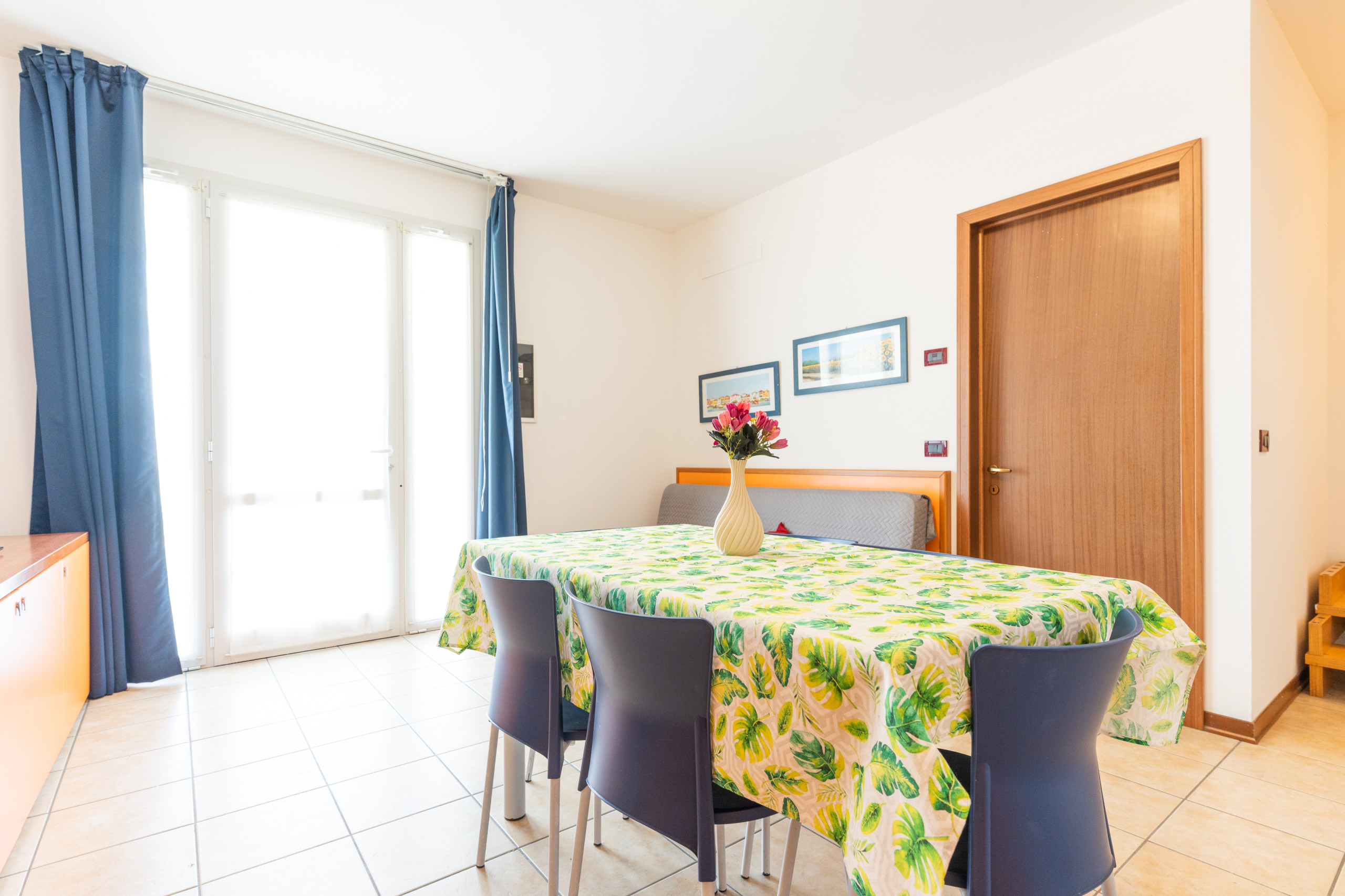 • bright living room with equipped kitchenette, dining table, French sofa bed and access to terrace or balcony;