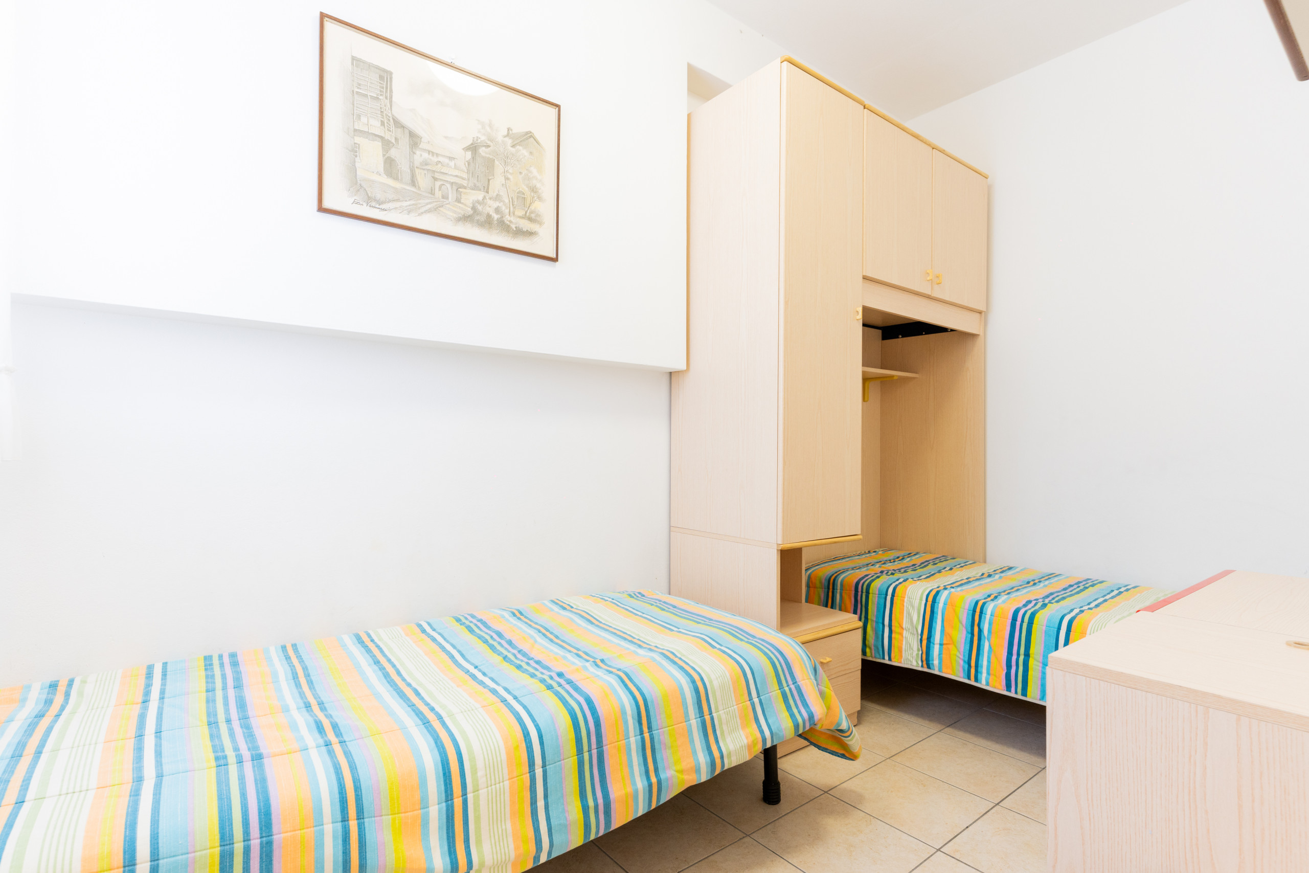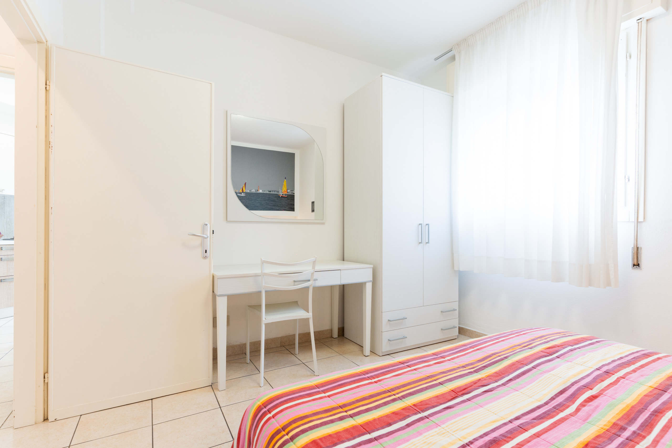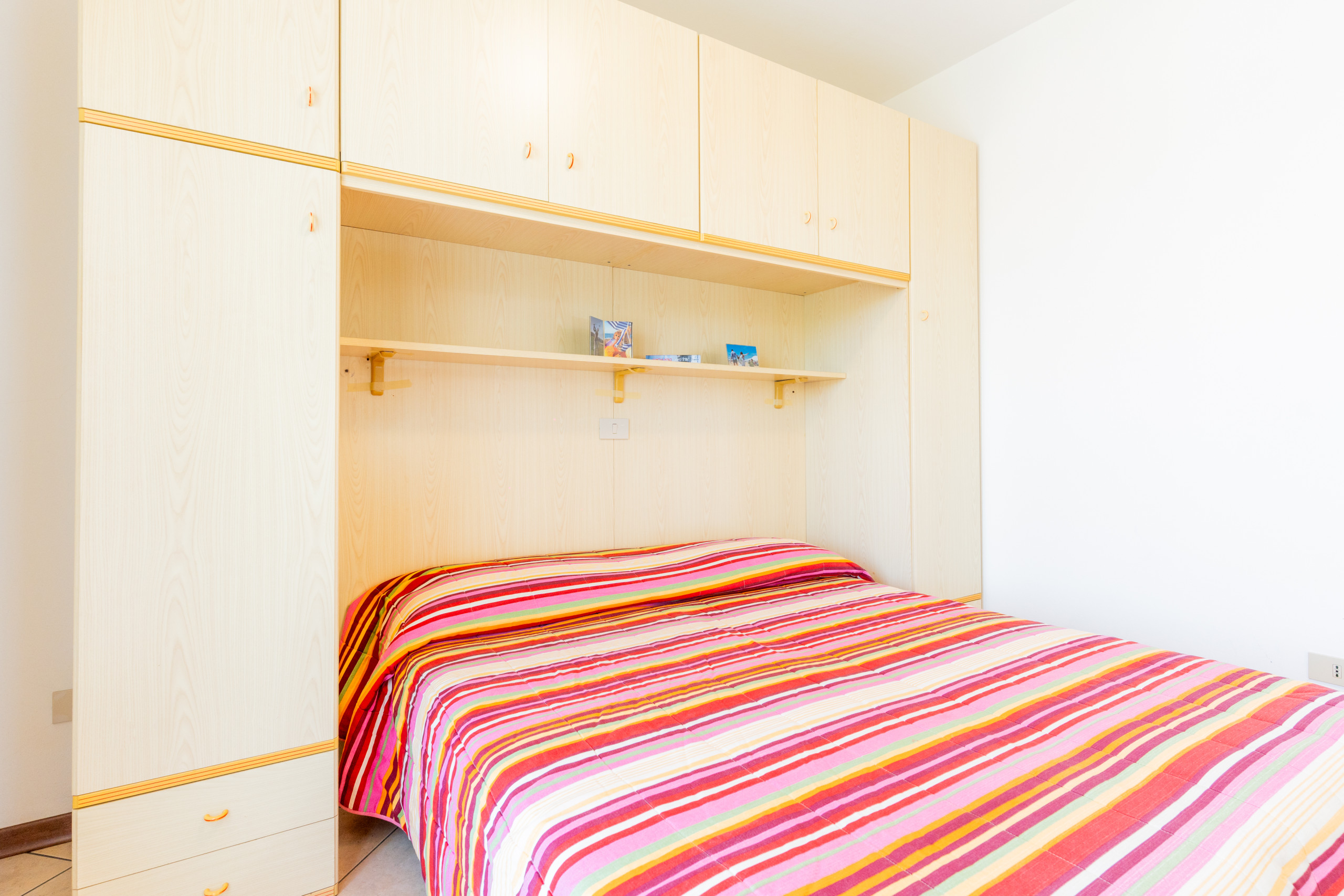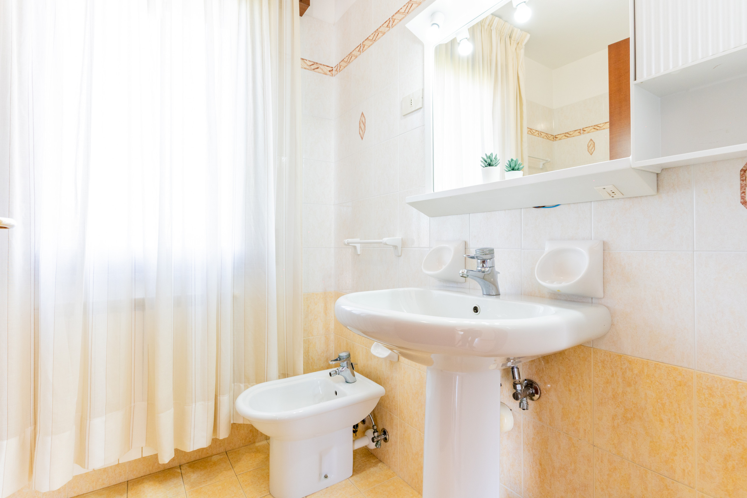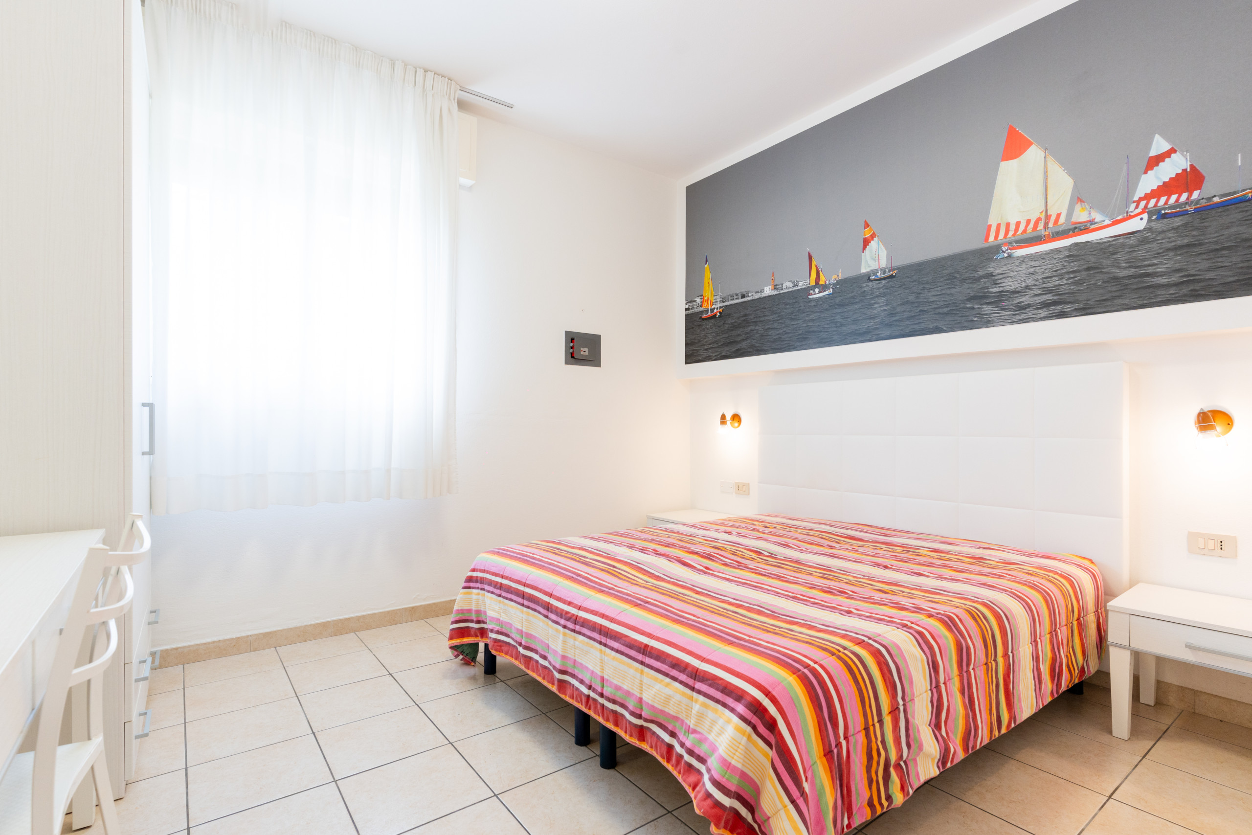 2 bedrooms flat on the first or second floor, Kitchenette and double sofa bed, balcony with table and chairs , 1 bathroom, bedroom with double bed, bedroom with 2 beds, TVSat, air conditioning, safe. Residence "I Tamerici" is a modern block of flats in Caorle Lido Altanea, developed on 3 and 4 floors facing a large swimming pool surrounded by sun beds. Available one and two bedrooms flats. Fee-paying beach service available (information in Lampo office in Caorle Lido Altanea).