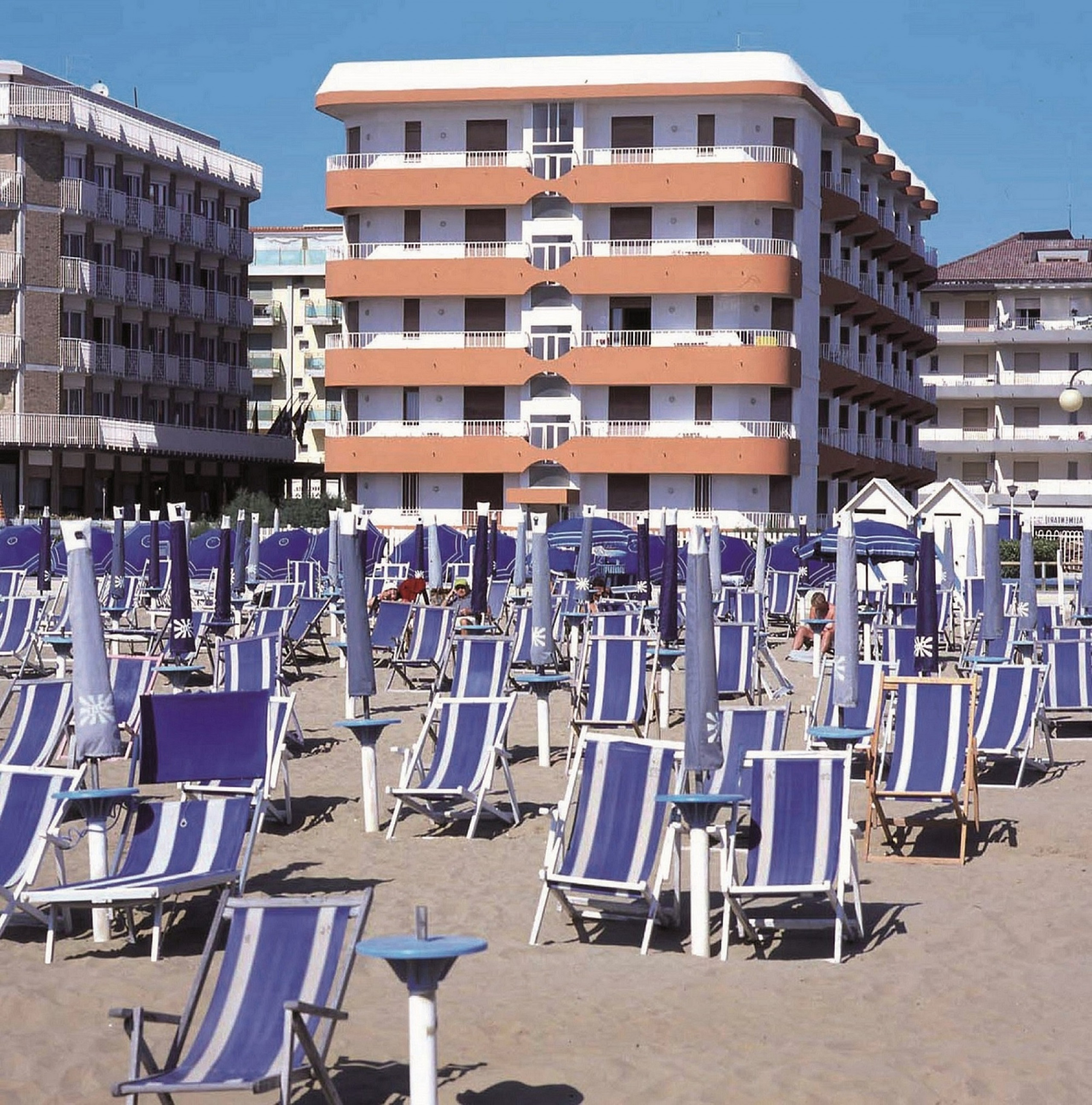 The house "Zenith" is an indipendent villa situated 10 meters from the beach of Lido di Jesolo, central but also quiet near Piazza Trieste surrounded by restaurants, bars and shops. Small private beach in front of the house. The villa consists of eight flats over 3 floors (no lift). All of them with tv, washing machine and air cond.Apartment with 2 Bedrooms on the1. Floor or mansard on the 3th floor with Without lift, 1 double bedroom with an extra single bed/bunkbed, 1 bedroom with 2 single beds/1 doublebed, 1 big living area with double sofa bed, TV, kitchencorner. 1 bathroom with shower box, washing maschine. Air cond.. 1 reserved parking place for each apartment by the house. Compulsory beach service on the main beach on surcharge, not included in the price