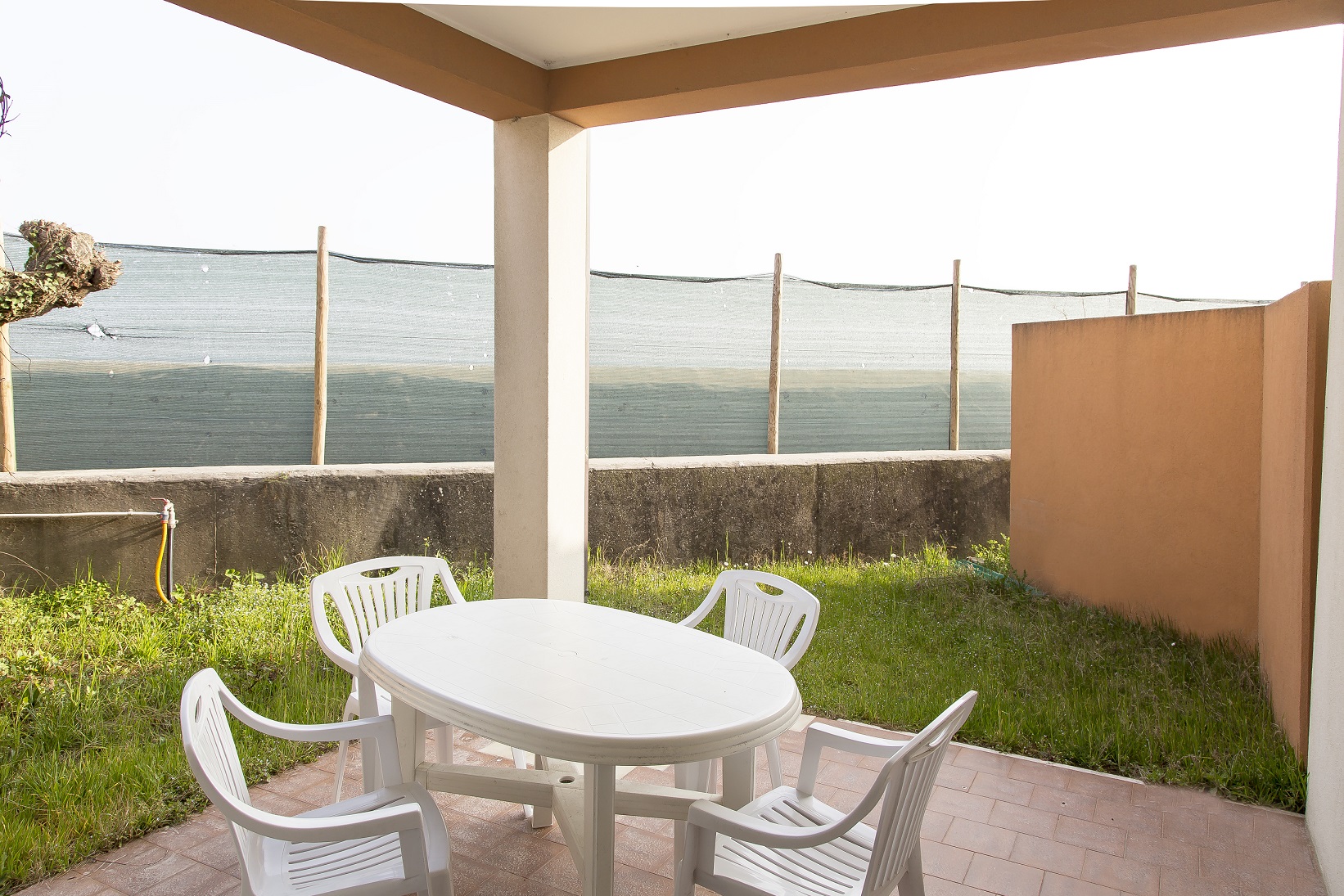 2 room flat with 4 beds and a double sofa bed. Flat on ground floor in the block "C", with 1 double bedroom + new bunkbed, double divanbed in dining-living room, new kitchen corner, one toilet, a covered terrace and garden with barrier. "Garuda C" is a Residence directly on the sea front with swimming pool in Ca' di Valle (Cavallino). It offers apartments of different types with TV, the most also with air cond. Compulsory beachplace on surcharge is compulsory and not included in the price. One reserved parking space for each apartment on the fenced parking.