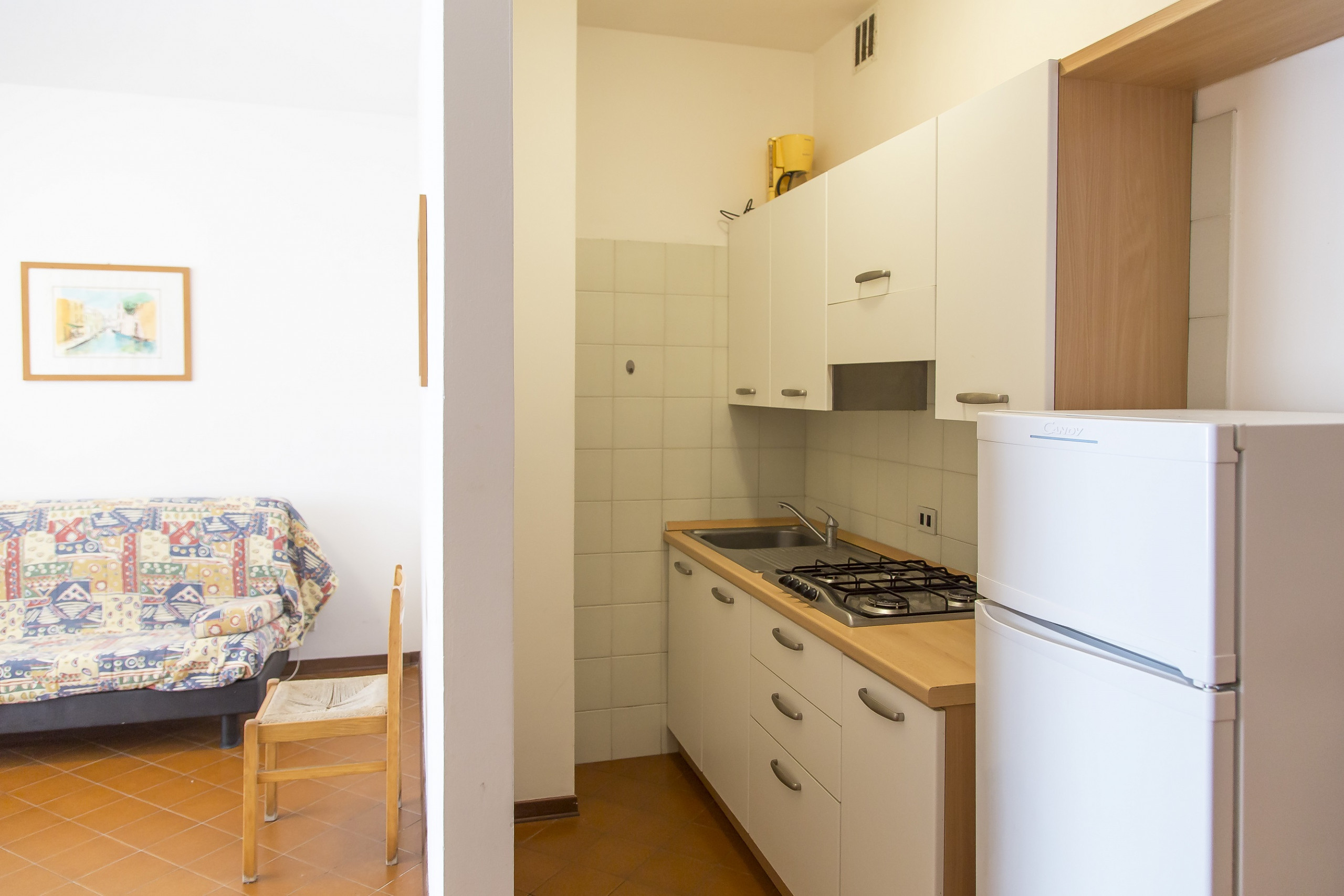 Small flat situated in the the eastern area of Jesolo Lido, third floor without lift. it has one bedroom with double bed and bunkbed, living room with kitchenette and bathroom, balcony. "Monreale" is a building, about 80 meters from the beach, situated between Piazza Milano and Piazza Torino in Lido di Jesolo. Surrounded by restaurants, bars and shops. The house has no lift ! It offers a airconditioned 2 room flat on the 3. floor with balcony and washing machine. 1 reserved parking space on the houseparking. Compulsory beachplace on surcharge, not included in the price.