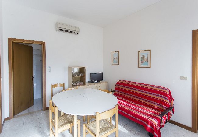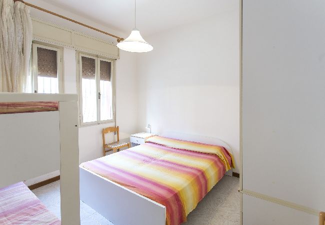 4 room flat with 7 beds. Apartment with 2 double bedrooms, 1 bedroom with bunk bed, dining - living room with kitchen corner and single sofa bed, bathroom and small furnished outdoor space. "Villa Norma" is a fenced single villa 70 meters from the beach in the central area of Lido di Jesolo between Piazza Brescia and Piazza Trieste. Villa Norma offers 4 appartaments typ four-room flats all with tv, air co., and washing machine, on the first floor also with balconies. Compulsory beachplace on surcharge, not included in the price. Fenced parkingplace for one car/each apartment.