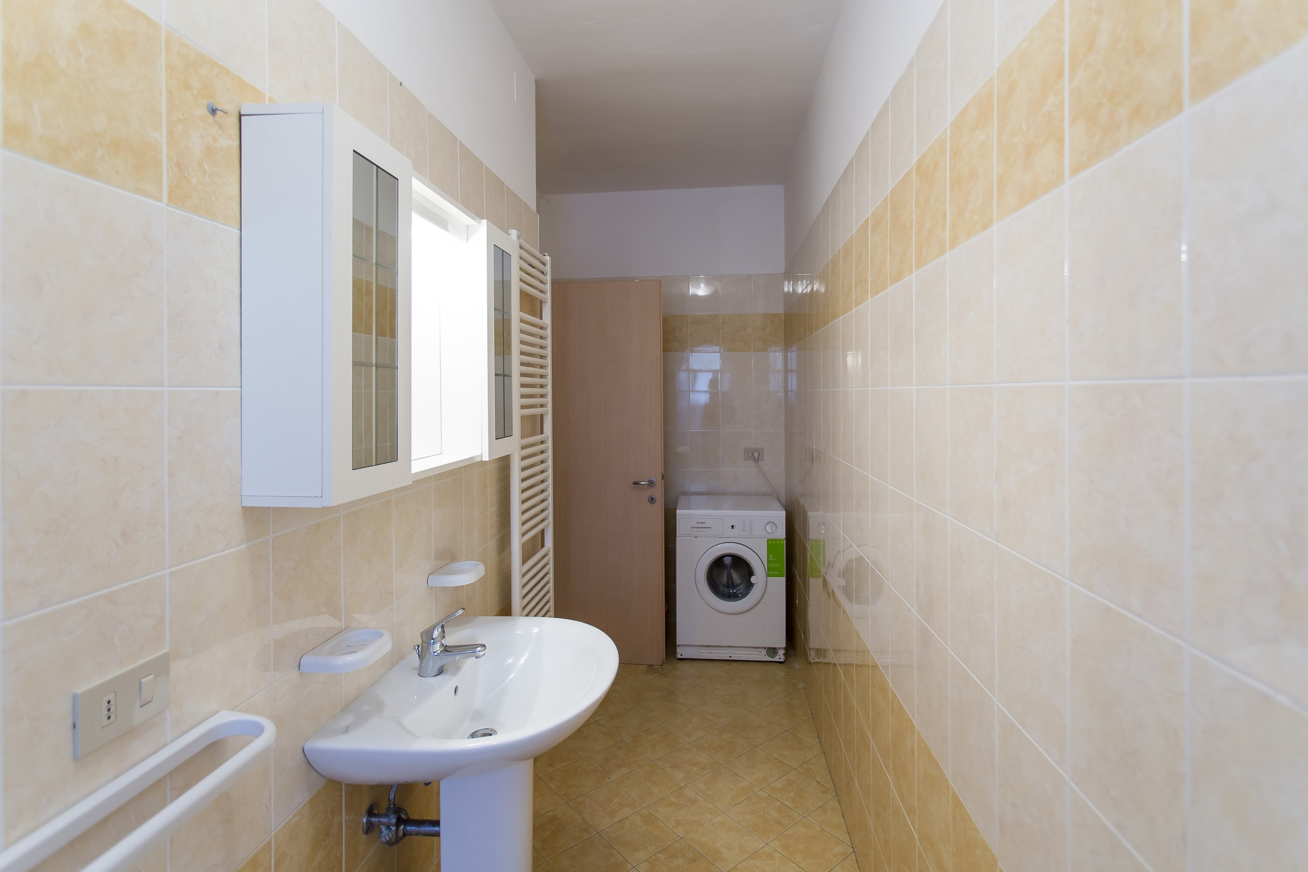 4 room flat with 8 beds. 4 room flat on the ground floor without terrace with 1 double bedroom, 1 double bedroom + singlebed, 1 bedroom wtih two singlebeds. Dining/living room, with kitchen corner. 1 complete bathroom with shower box and a second bathroom only with shower without toilet. The house "Zenith" is an indipendent villa situated 10 meters from the beach of Lido di Jesolo, central but also quiet near Piazza Trieste surrounded by restaurants, bars and shops. Small private beach in front of the house. The villa consists of eight flats over 3 floors (no lift) some of them with large balconies to the seaside. All of them with tv, washing machine and air cond. Flats with three bedrooms could also have two bathrooms. Compulsory beach service is on surcharge and not included in the price. Reserved parking place by the house.