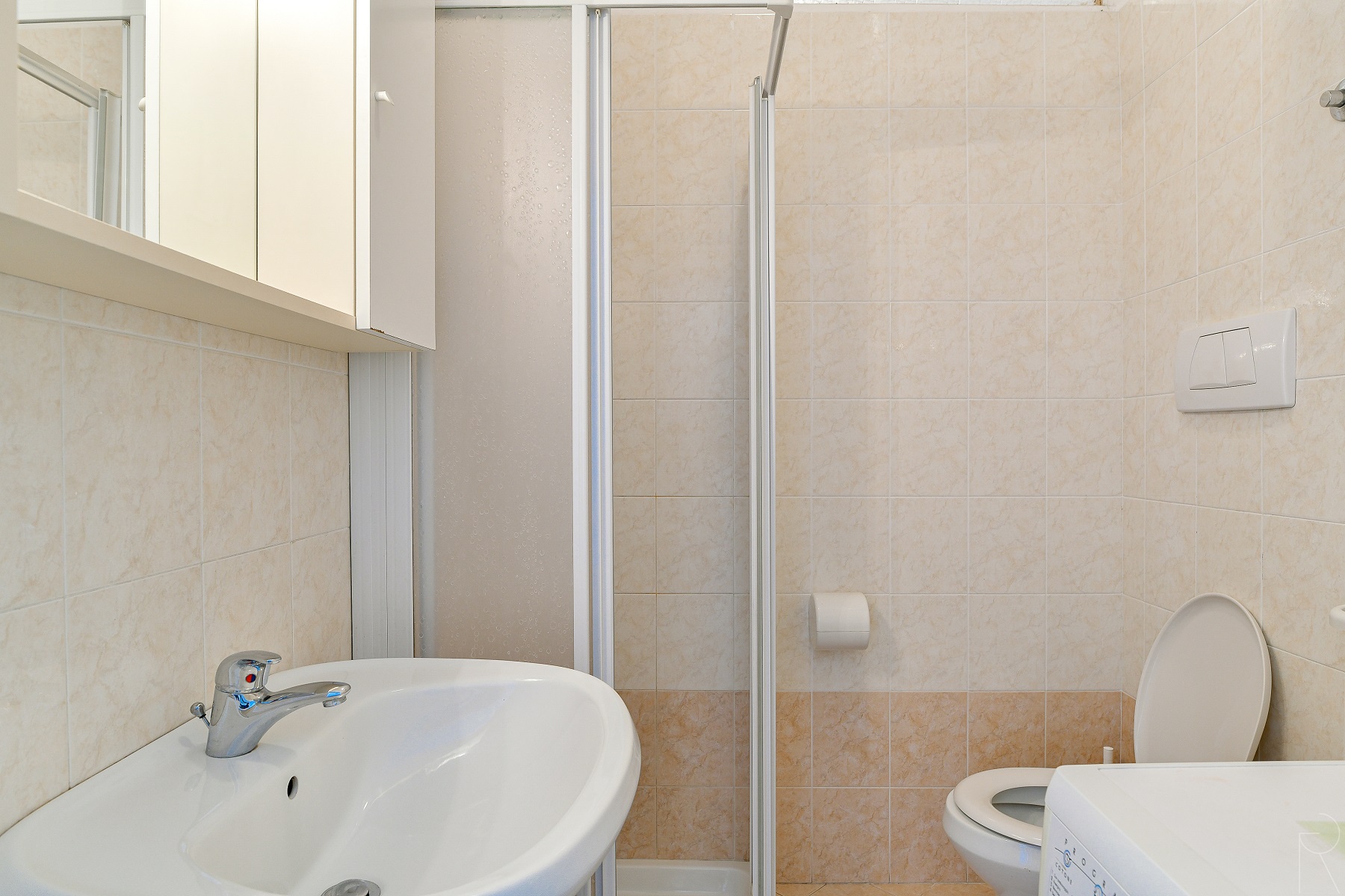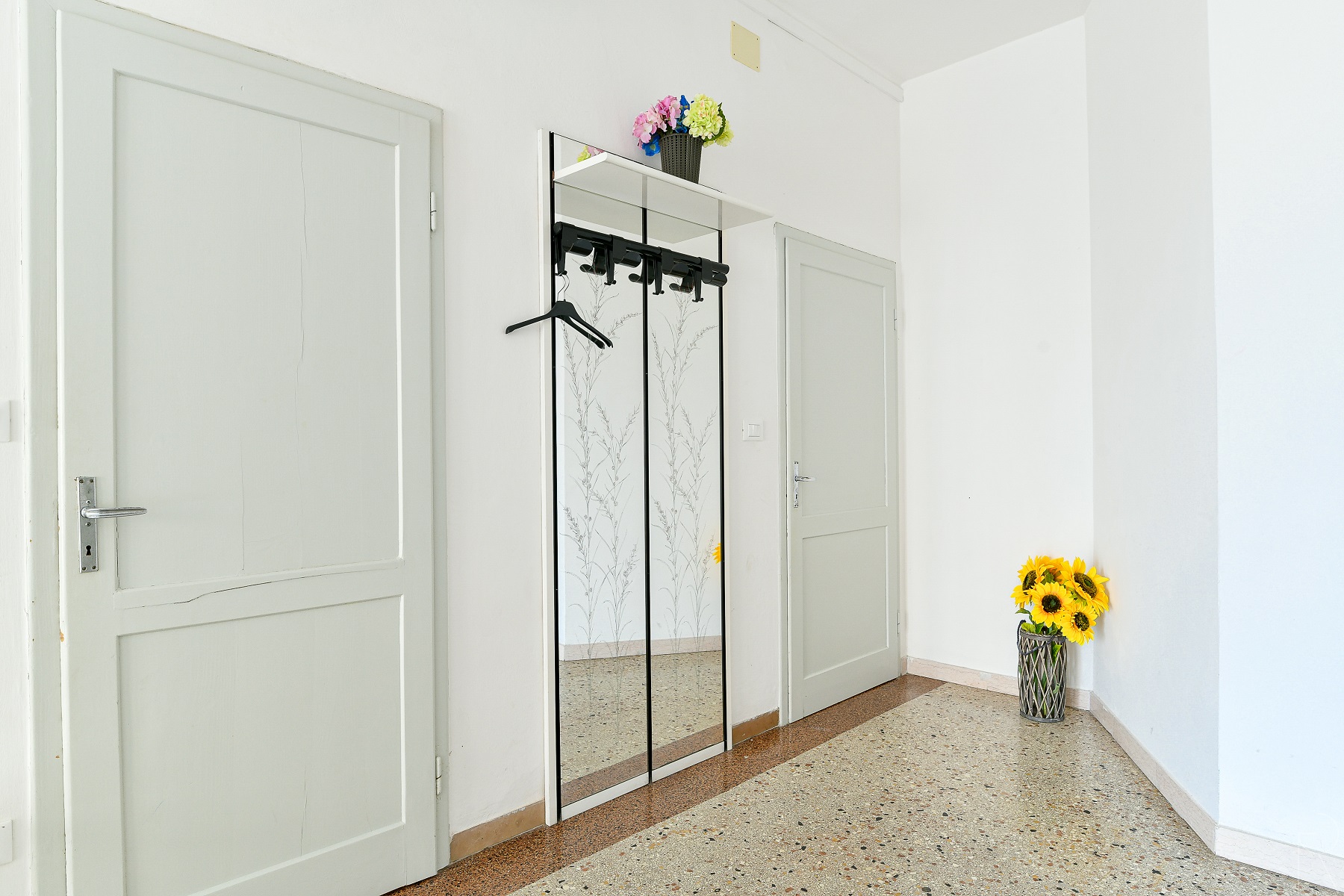 4 room flat with 8 beds. 4 room flat on the ground floor without terrace with 1 double bedroom, 1 double bedroom + singlebed, 1 bedroom wtih two singlebeds. Dining/living room, with kitchen corner. 1 complete bathroom with shower box and a second bathroom only with shower without toilet. The house "Zenith" is an indipendent villa situated 10 meters from the beach of Lido di Jesolo, central but also quiet near Piazza Trieste surrounded by restaurants, bars and shops. Small private beach in front of the house. The villa consists of eight flats over 3 floors (no lift) some of them with large balconies to the seaside. All of them with tv, washing machine and air cond. Flats with three bedrooms could also have two bathrooms. Compulsory beach service is on surcharge and not included in the price. Reserved parking place by the house.