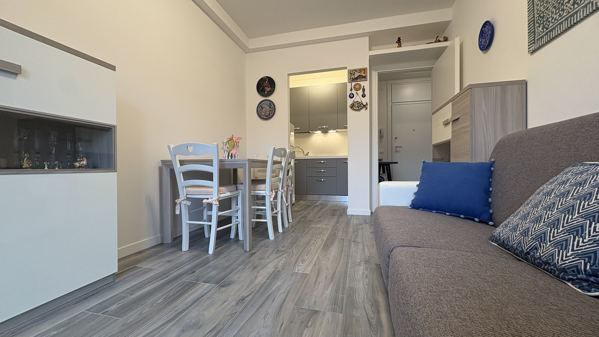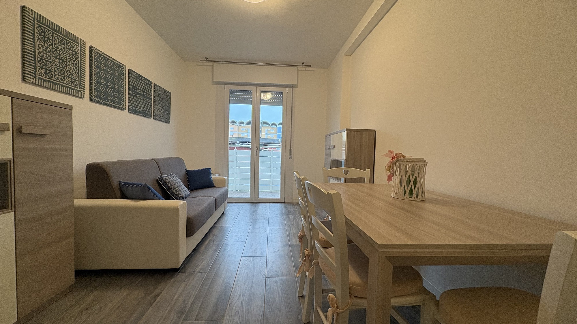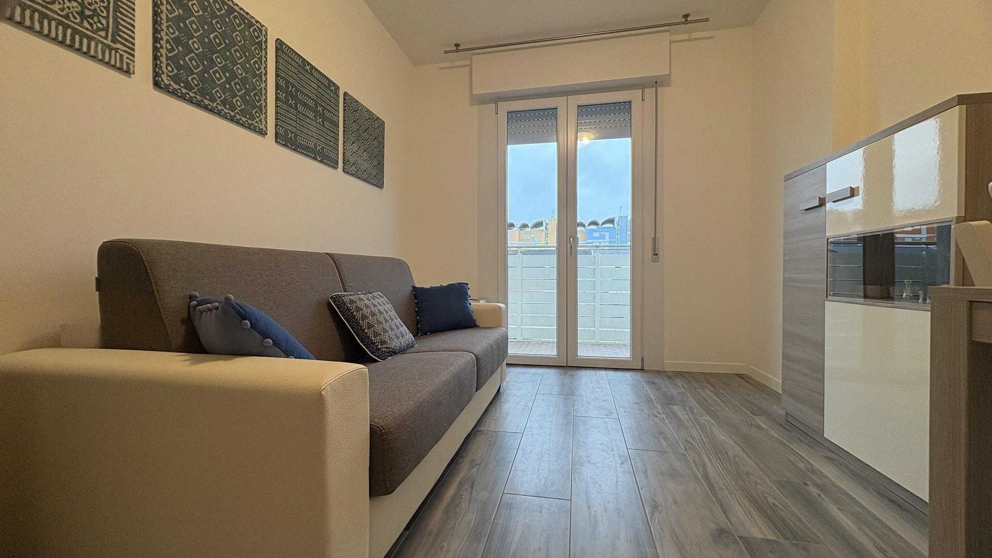 The two-room apartment, located on the 4th floor, offers an area of 43 sq m and, thanks to the west-facing balcony, you can enjoy a beautiful sea view.