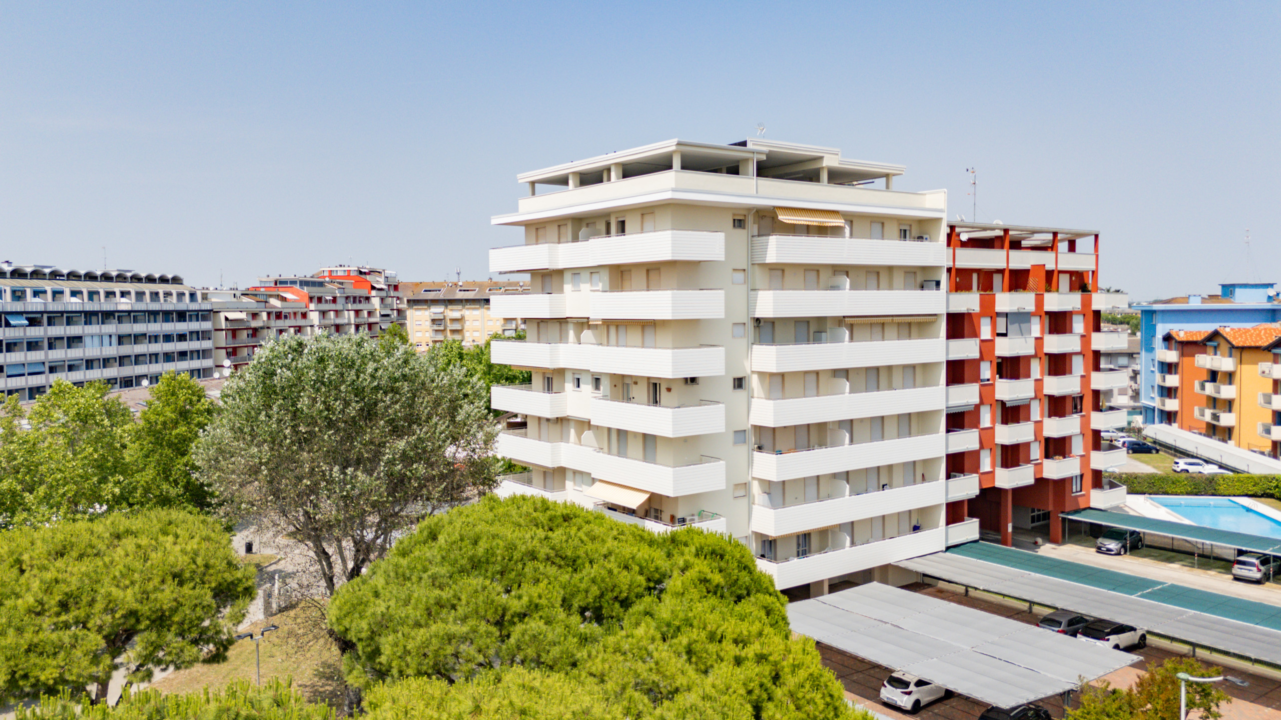 Each apartment is equipped with an exclusive balcony, air conditioning, TV and private parking space, to ensure a carefree stay. In addition, the property has a shared swimming pool for adults and children, an excellent opportunity to relax and have fun together.