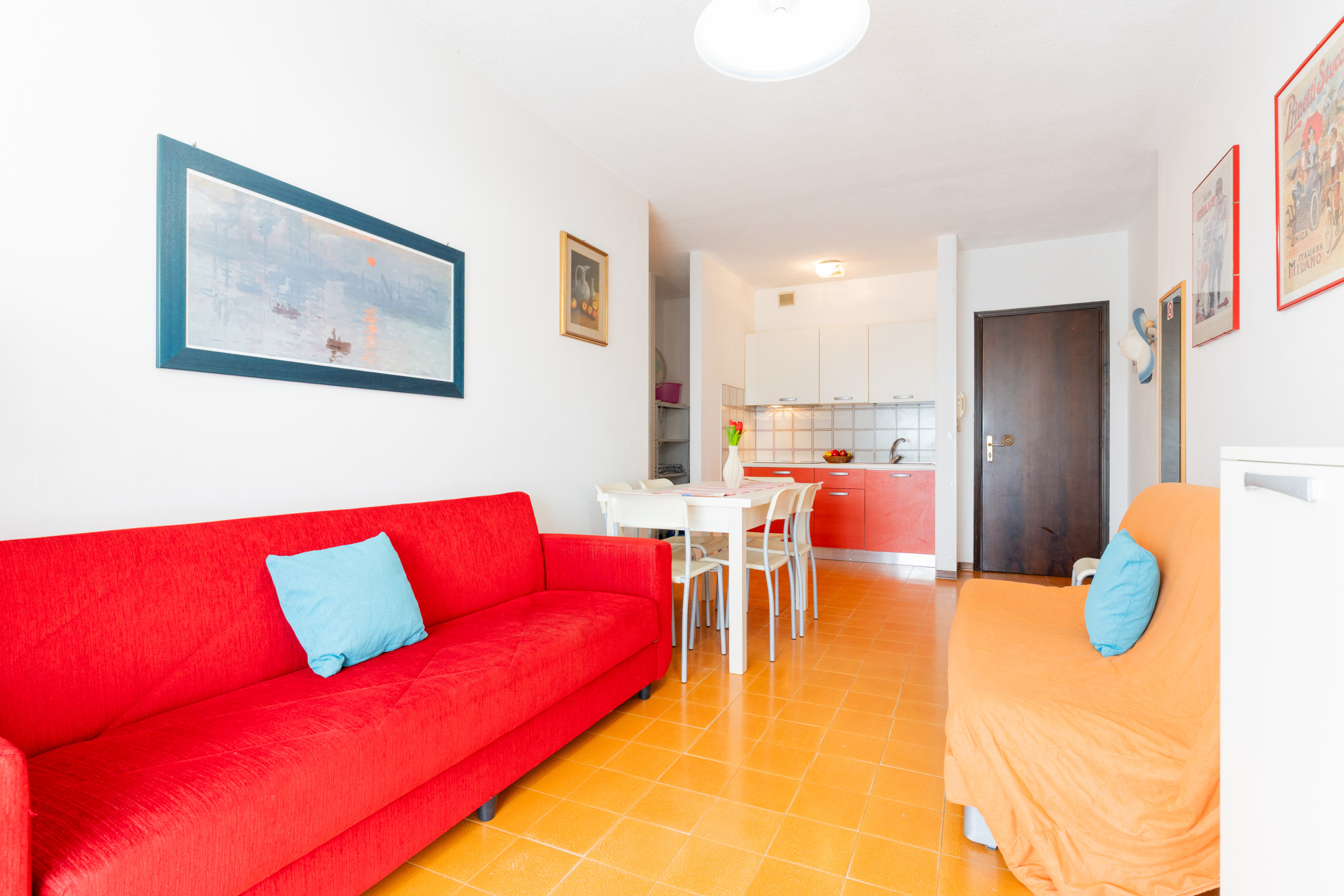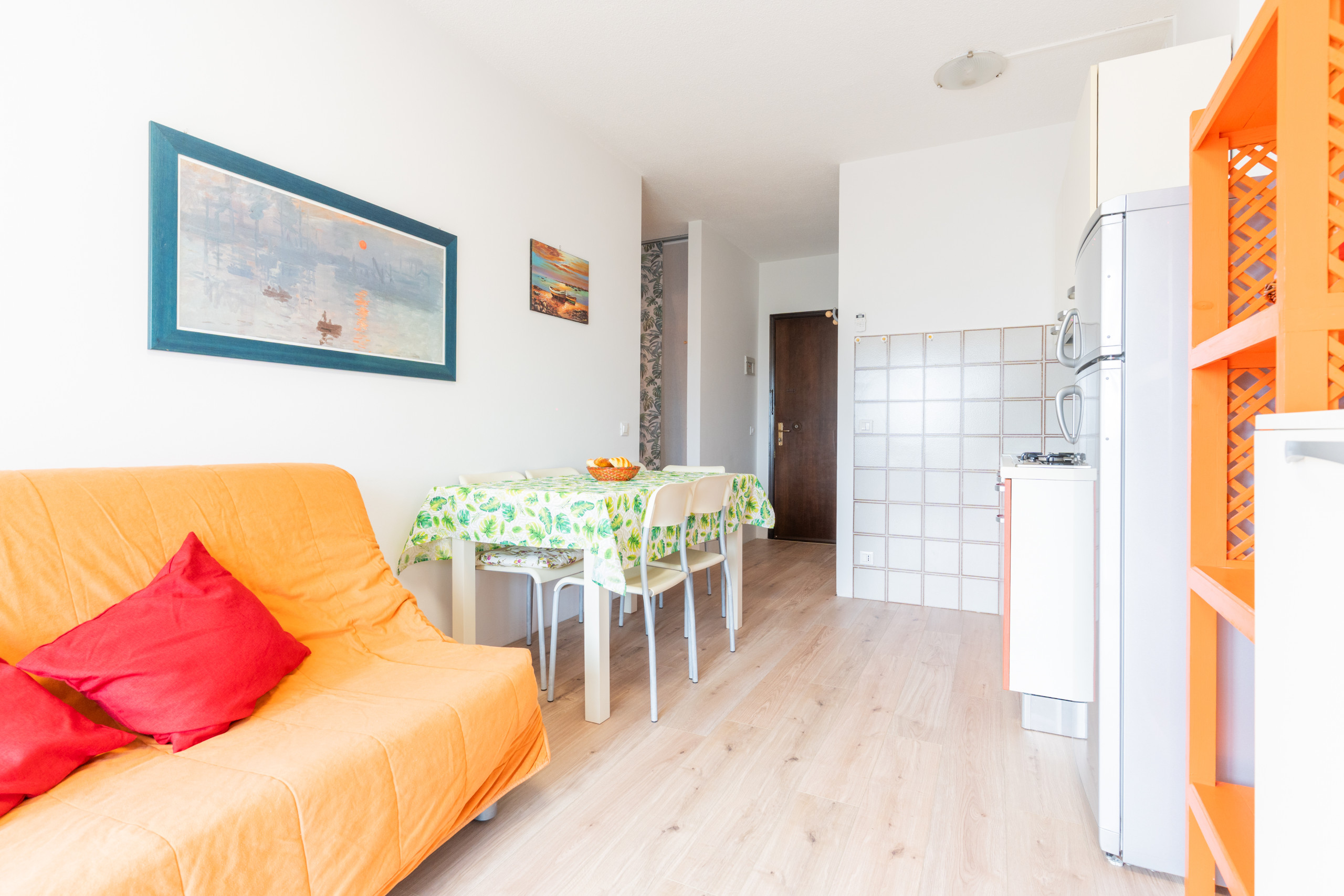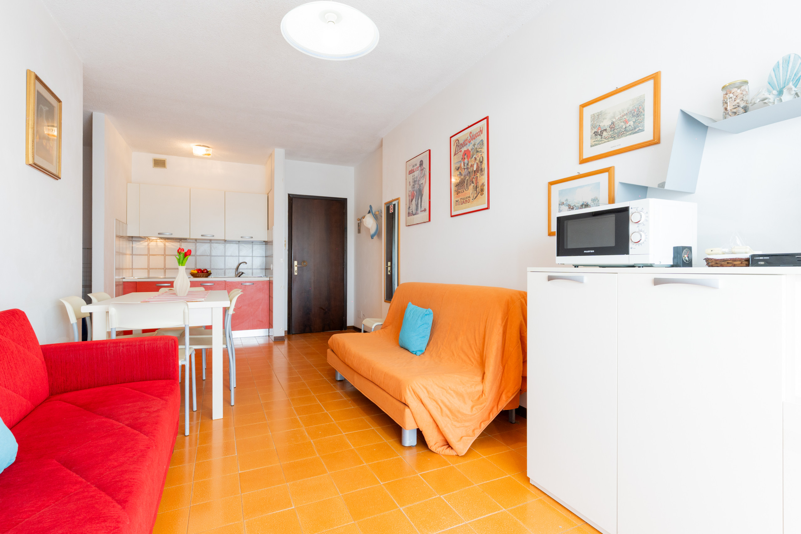 The two-room apartment, located on the 4th floor of the residence, offers 40 sq m of space and, thanks to the south-east facing balcony, you can enjoy a view of the swimming pool.