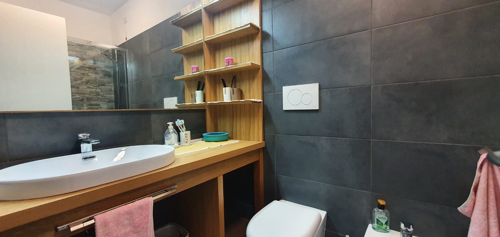 In addition, you will find everything you need to cook, including an induction hob, microwave, washing machine and dishwasher.
