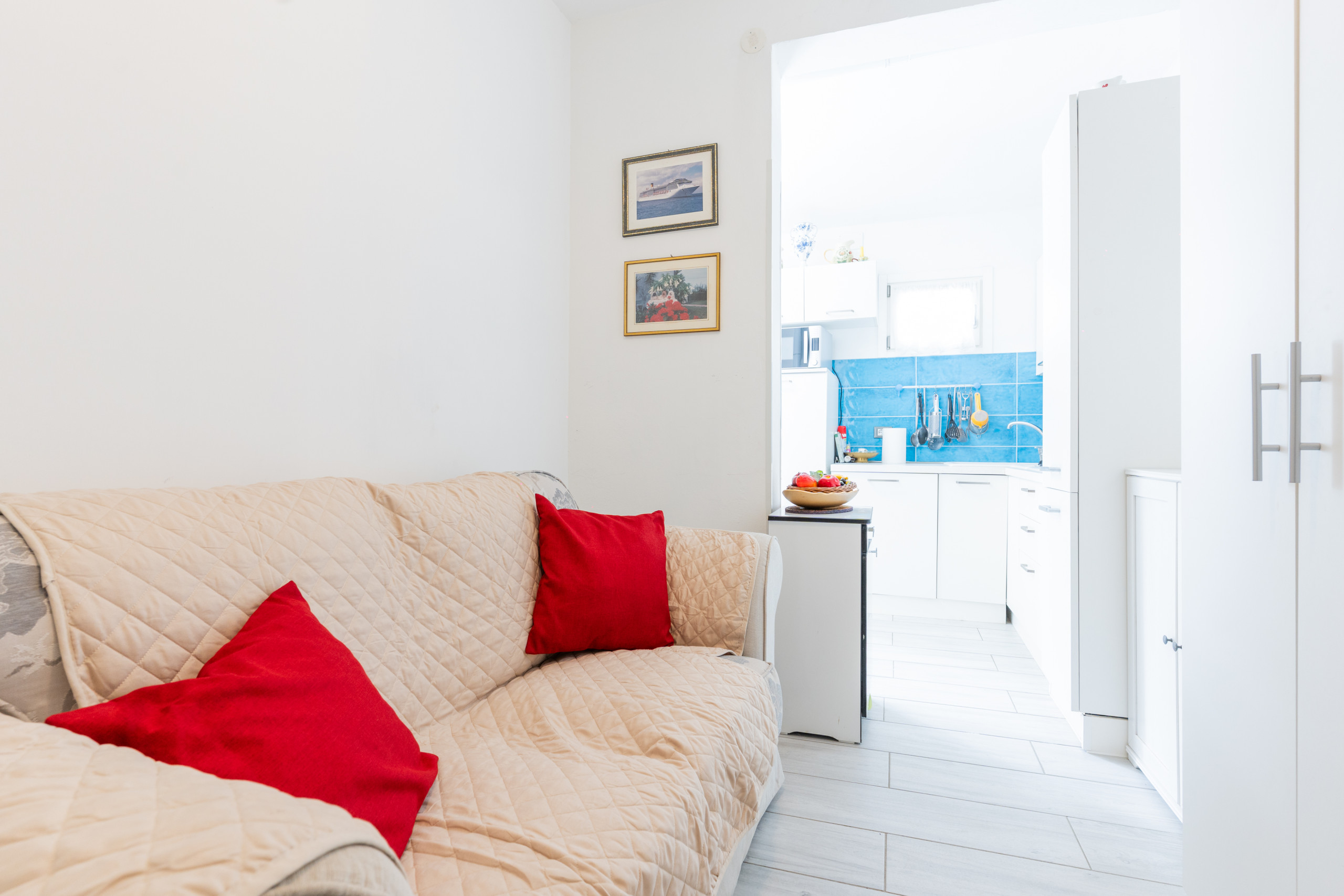 The accommodation, located on the 3rd floor of the residence, has a private east-facing terrace with a view of the beautiful pool and the sea. It also offers a private parking space within the complex, air conditioning that will ensure maximum comfort even on the hottest days, TV, washing machine and a microwave.