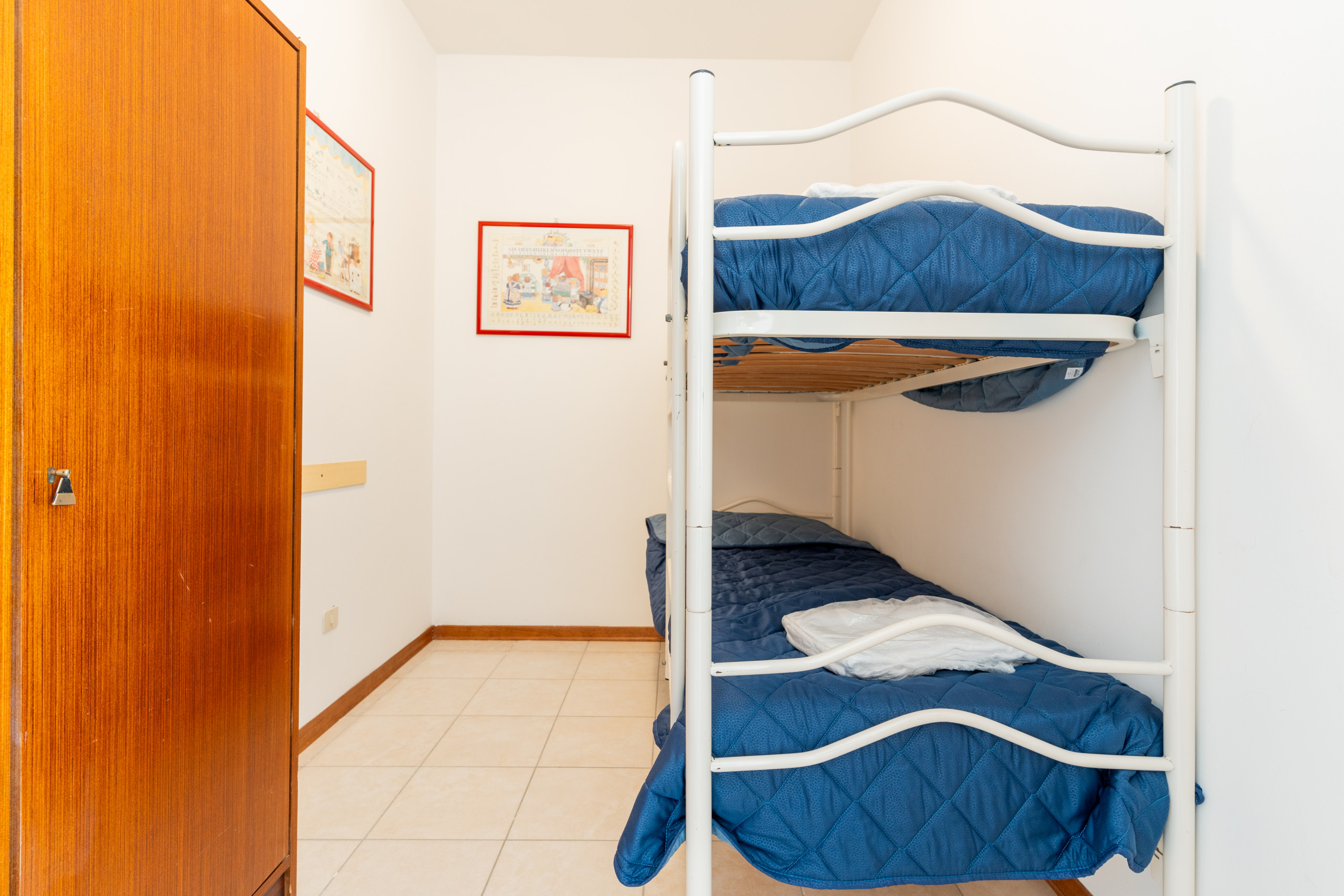 - A bedroom with a double bed and a bunk bed.